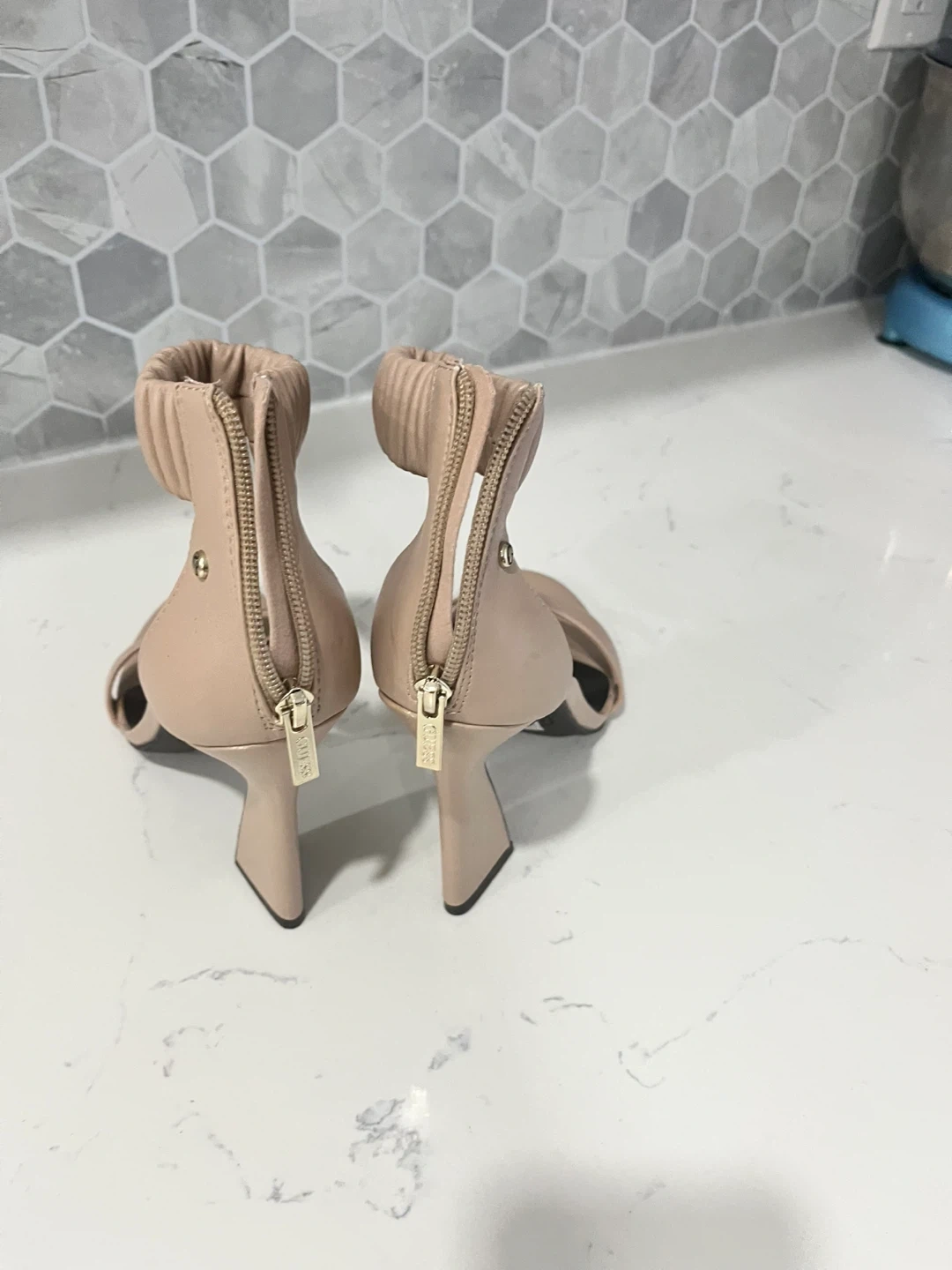 Selling a pair of Guess heels in a lovely beige colour! They are a size 8.5 and feature a unique zipper detail on the back. Perfect for dressing up any outfit!Never worn