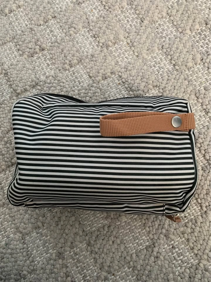 Clutch diaper bag. Holds quite a bit. Perfect for when you don’t want to carry around/bring your full diaper bag for walks, quick runs to the store, short outings, or to save space in your stroller storage. Smoke-free home.