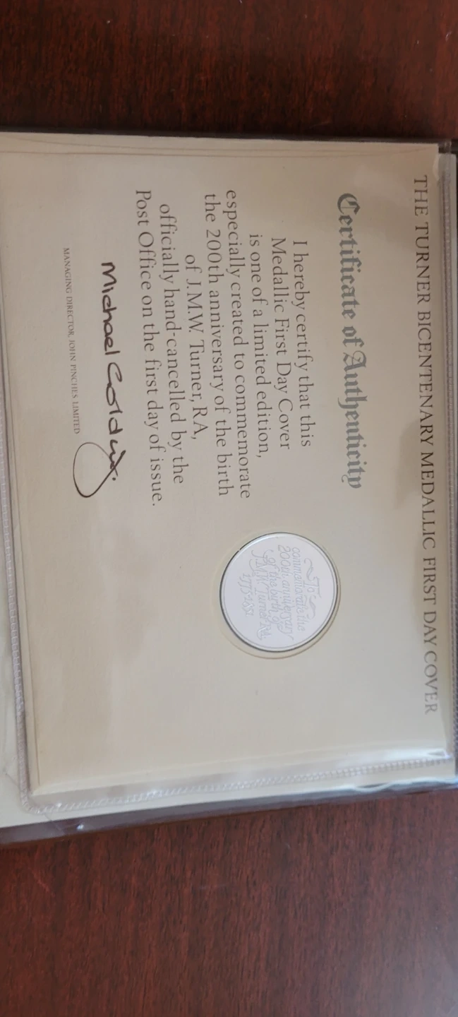 Buy & SellThe Turner Bicentenary First Day CoverThe Turner Bicentenary First Day Cover$90This is The Turner Bicentenary Medallic First Day Cover. includes stamps and a certificate of authenticity. 21g silverWHERE TO MEETCheck LocationView MapSELLERAaronOliver505 reviews0 chats·0 favorites·6 viewsSEND CHAT TO SELLERHi Aaron! I’m interested in your listing.Hi Aaron! I’m interested in your listing.Get the Karrot app to chatSign In to chat