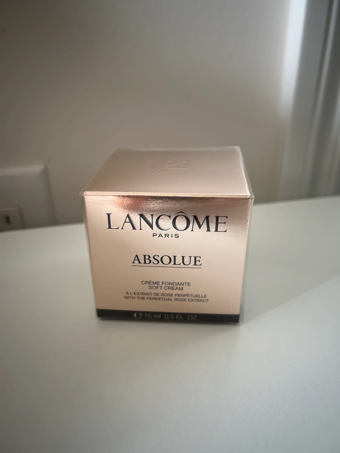 Selling a Lancôme Absolue Crème Fondante Soft Cream. It contains the Perpetual Rose Extract. The cream is 15ml or 0.5 FL OZ. It has a soft texture and is suitable for sensitive skin