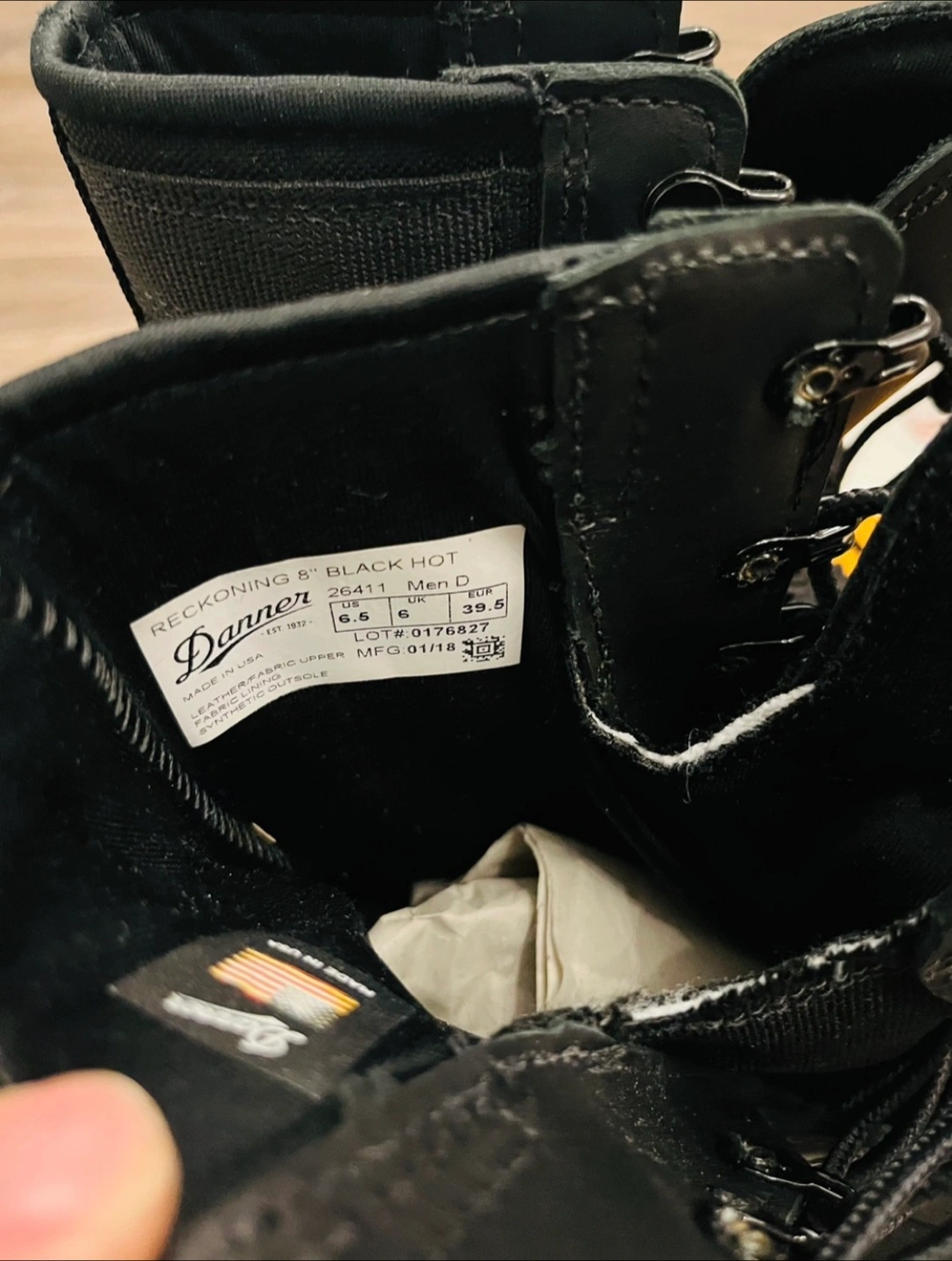 Danner Reckoning 8" boots in black. Men's size 6.5 US / 39 EUR.