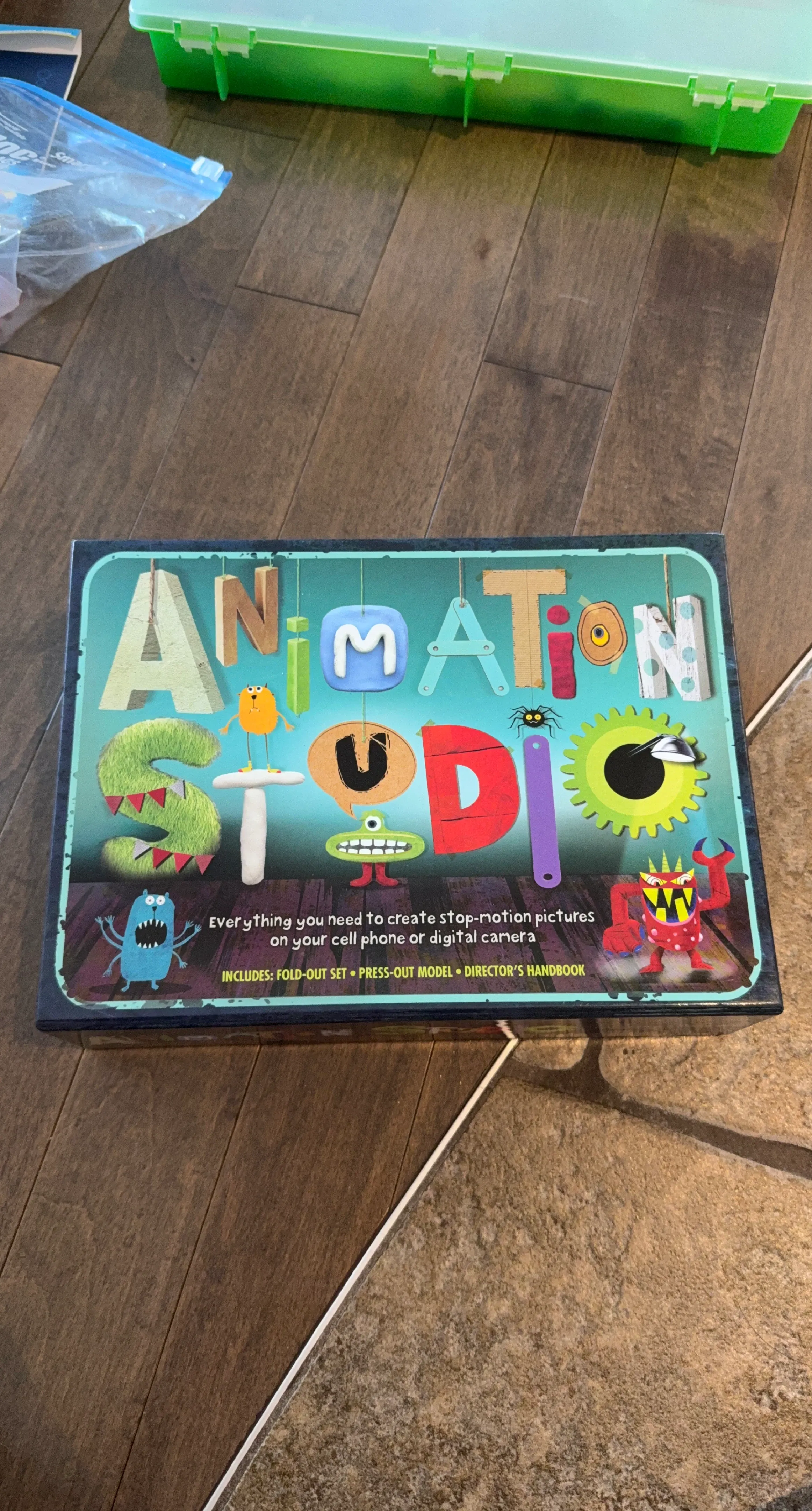 Stop motion kit. Very fun for all ages. Comes with backgrounds and lots of characters. Use an app to make the stop motion!