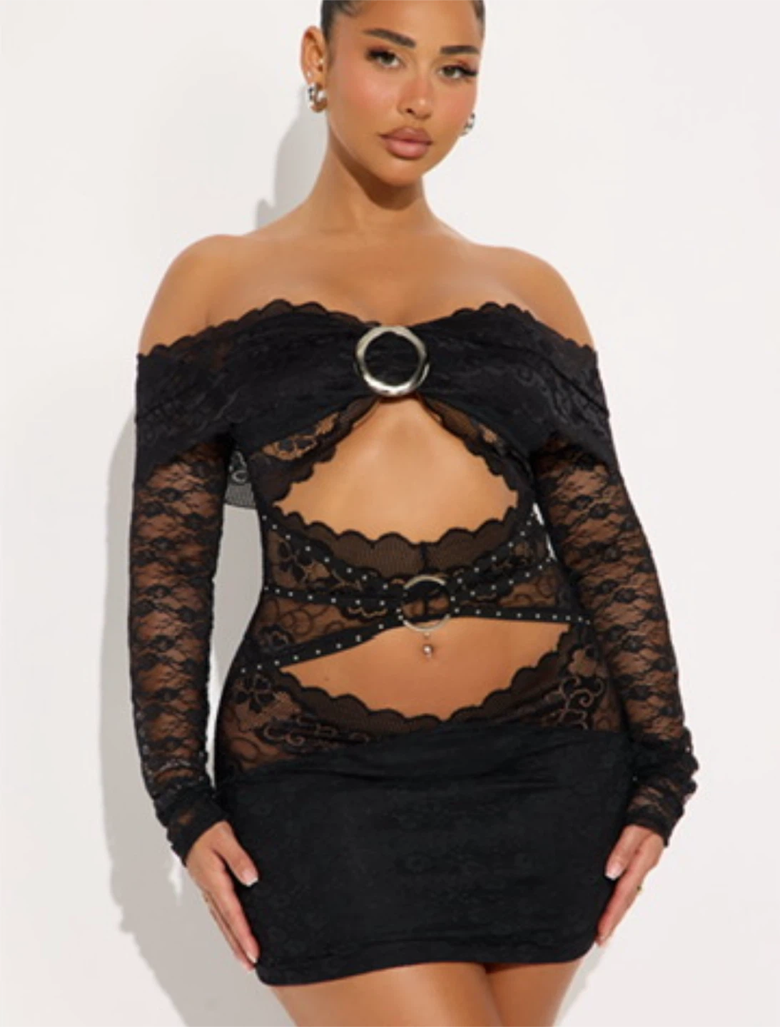 New Fashion Nova Hadley Cut Out Lace Mini Dress - Black, Size M