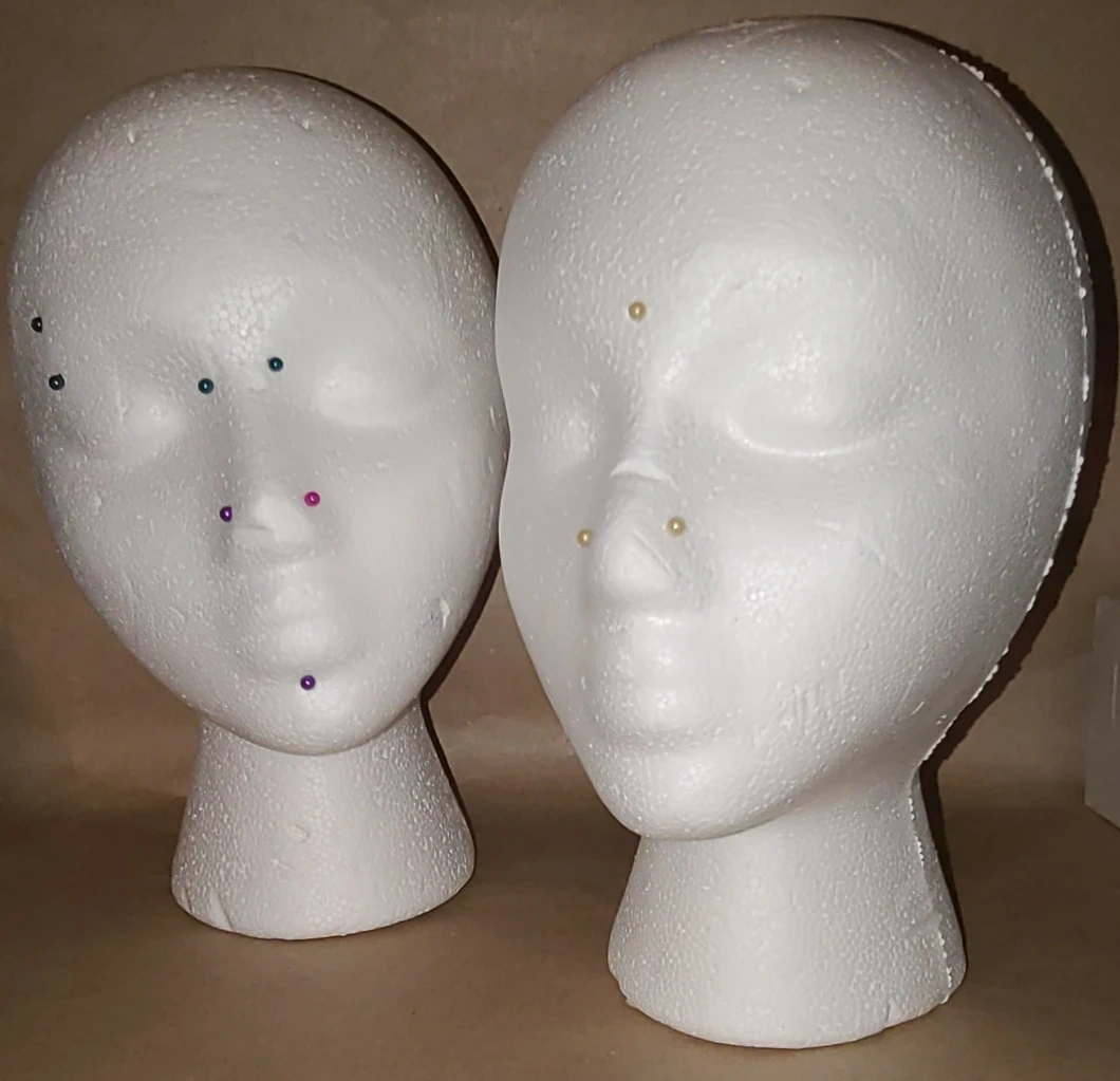 Selling a set of two styrofoam mannequin heads. Great for displaying hats, wigs, or jewelry! They have a few pins in them that can easily be removed.