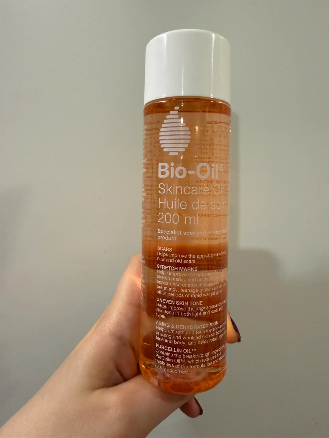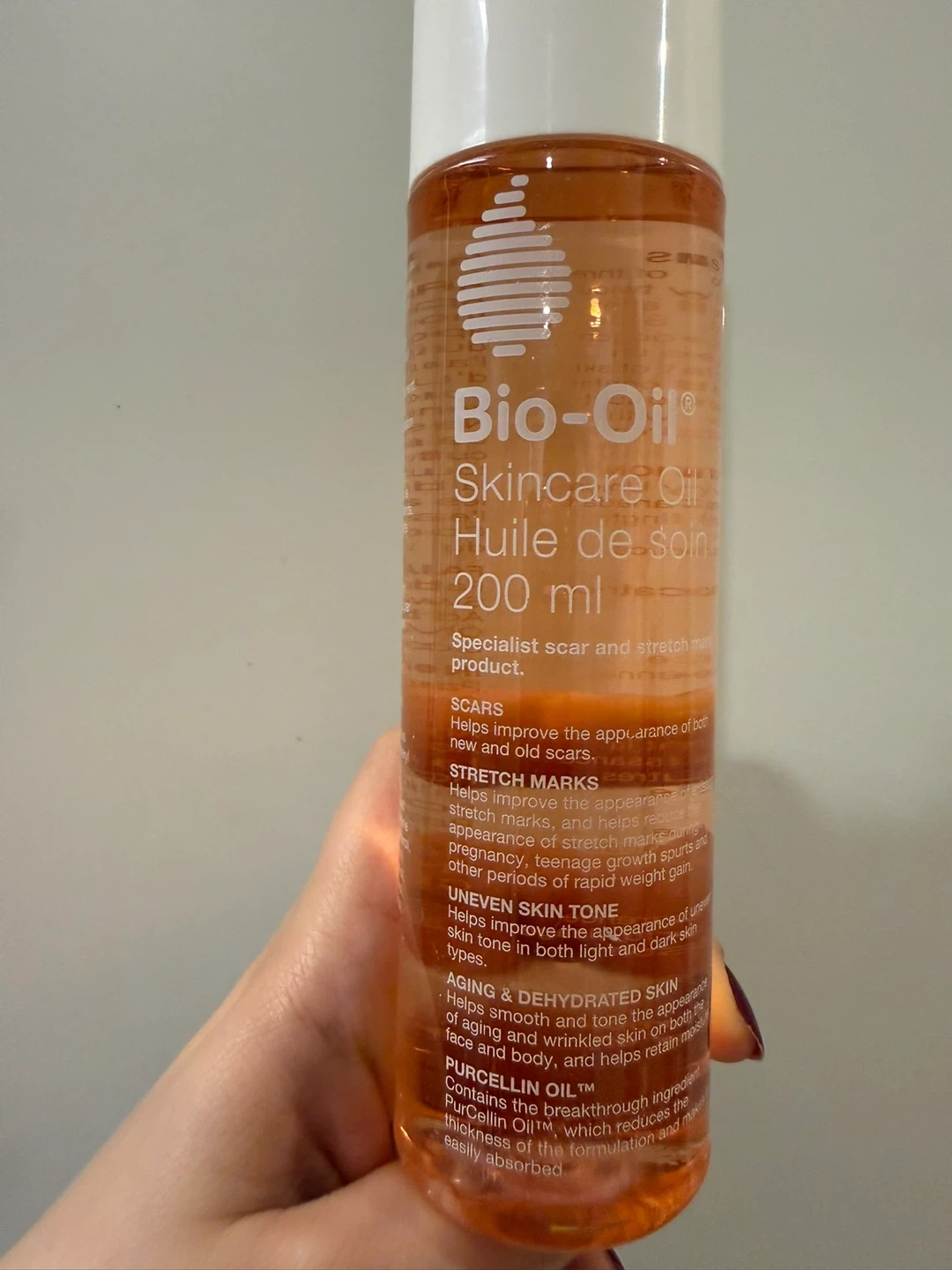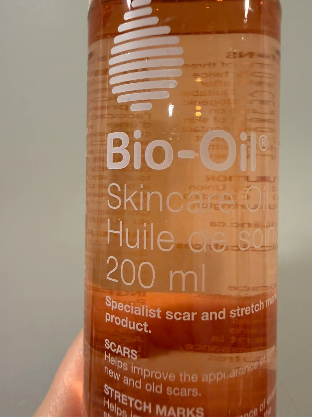 Brand new Bio-Oil specialist scar and stretch mark product. It helps improve the appearance of scars, stretch marks, uneven skin tone, and aging and dehydrated skin. 200 ml bottle.