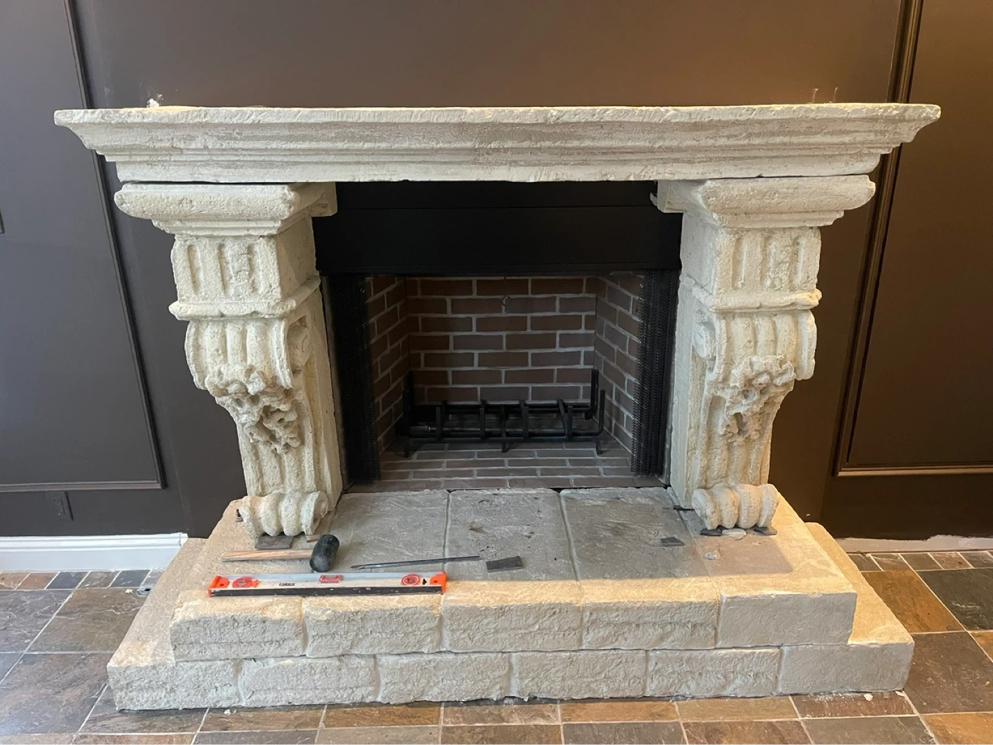 Antique Stone Fireplace Mantle