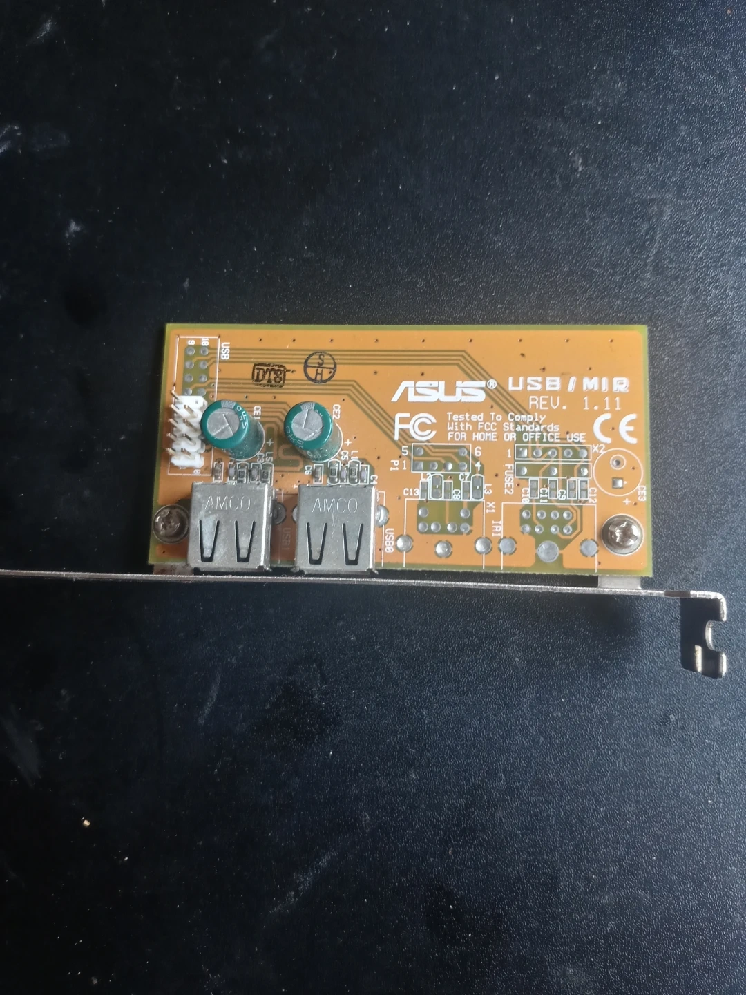 This is an ASUS P5KPL-CM motherboard featuring an Intel Core 2 Duo 2.13GHz CPU. It includes an ASUS USB/MIR expansion card with two USB ports. Supports DDR2 memory.