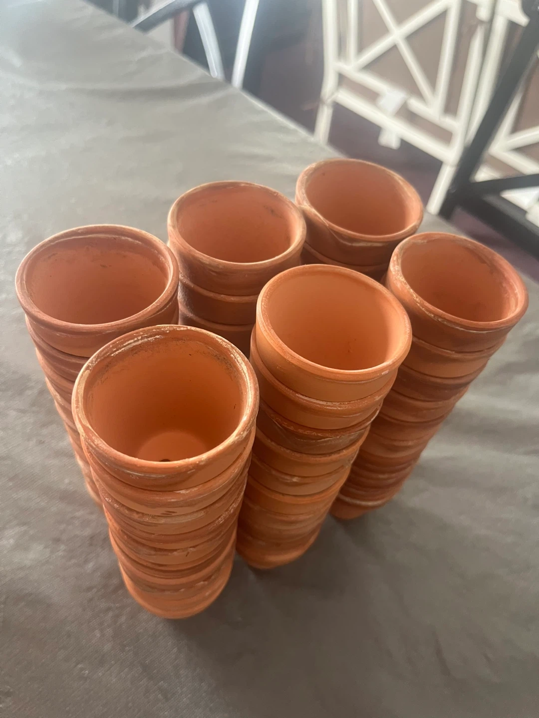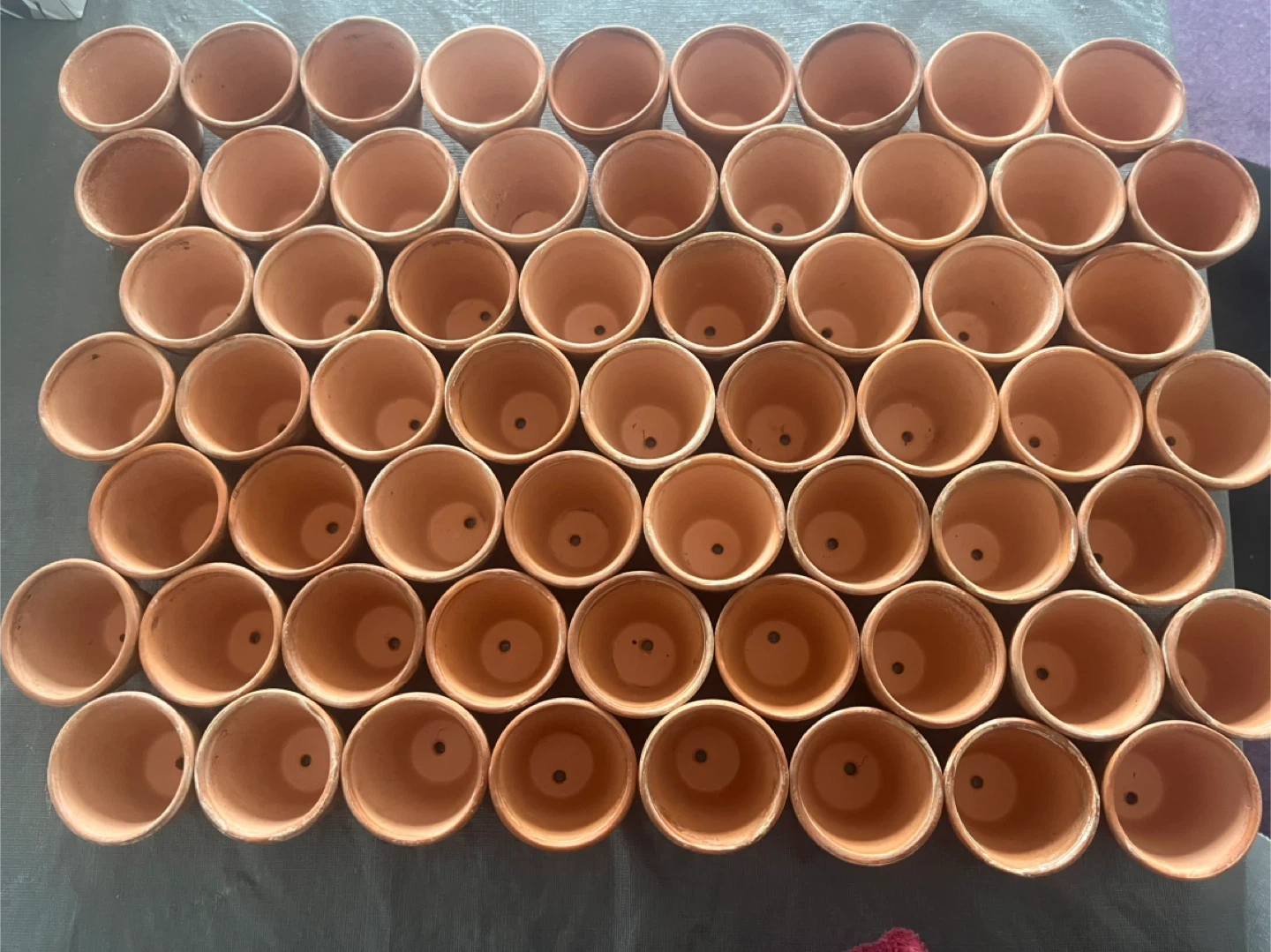 Bundle of 60 terracotta plant pots. These pots are great for starting seedlings or for small plants. They're made of durable clay and have drainage holes.