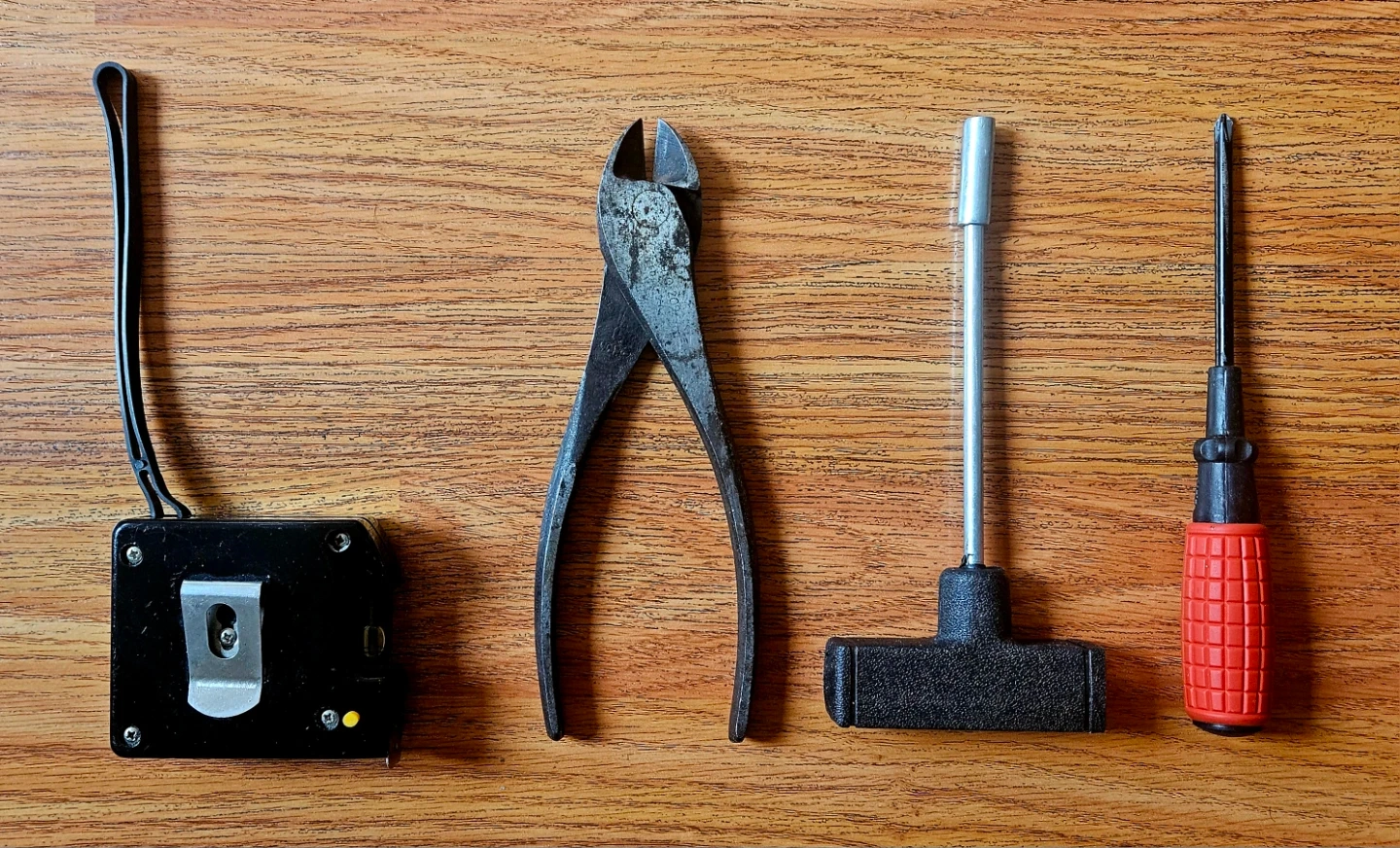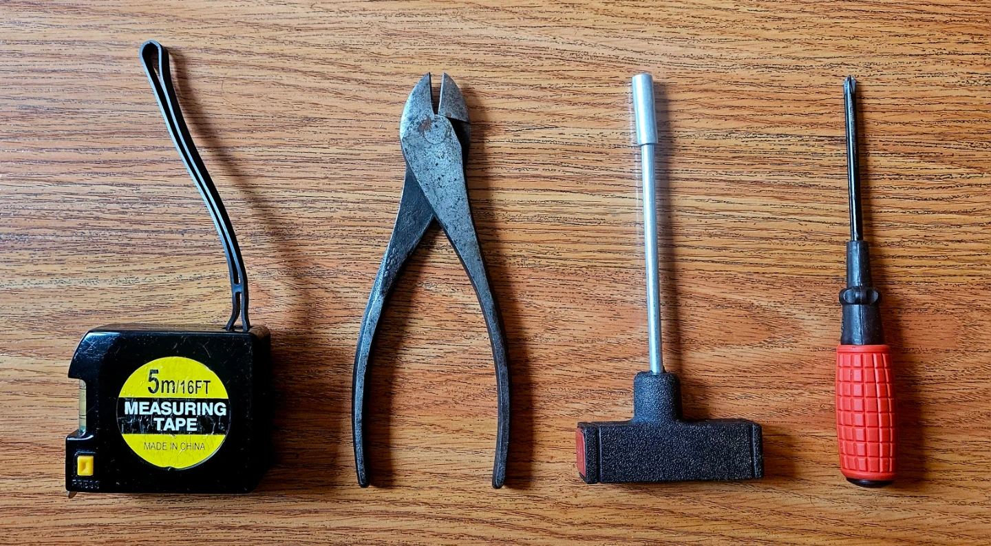 Also included are a pair of wire cutters, a new T-handle tool, and a new screwdriver with a red grip.