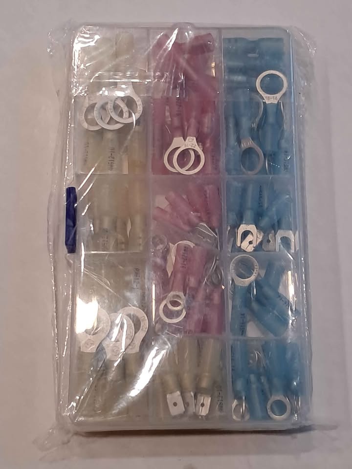 120 pcs heat shrink connectors kit. Marine grade pure tinned copper. Adhesive lined heat shrink tubing. Extensive variety for a wide range of applications. Brand new sealed.