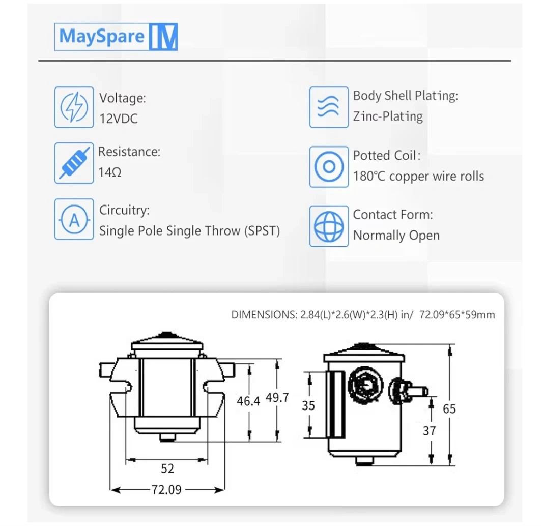MaySpare Auto Relay 100A to 300A 12V Solenoid Relay 3 Terminal