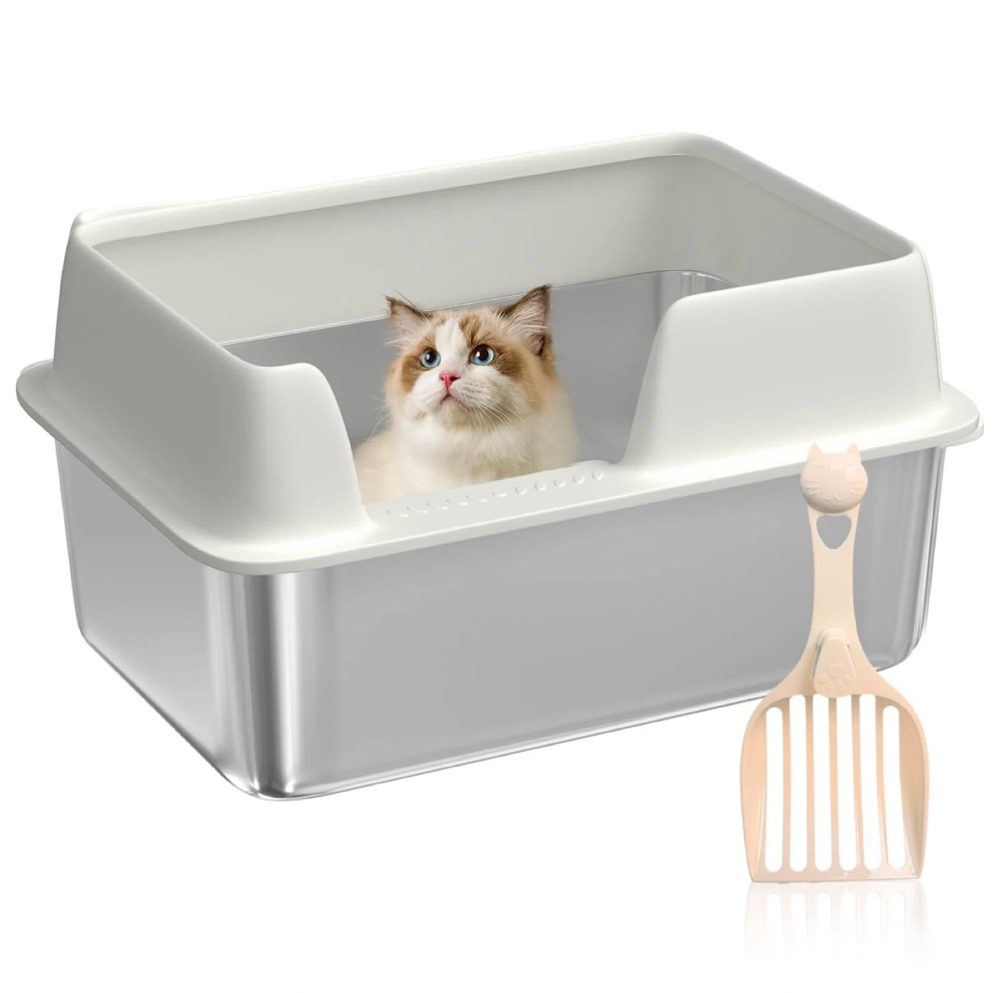 XL 20L,Stainless Steel Cat Litter Box – High Sides, No Smell, Ea