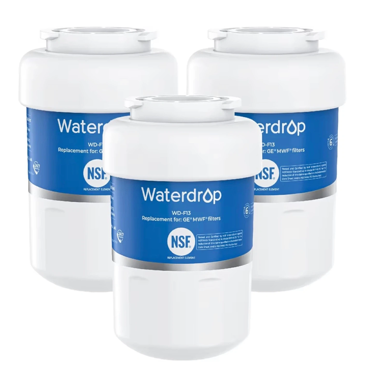 Selling a pack of three Waterdrop WD-F13 refrigerator water filters. These are replacement elements for GE MWF filters. They're also NSF certified, ensuring quality and safety for your drinking water! Ideal fit for your fridge