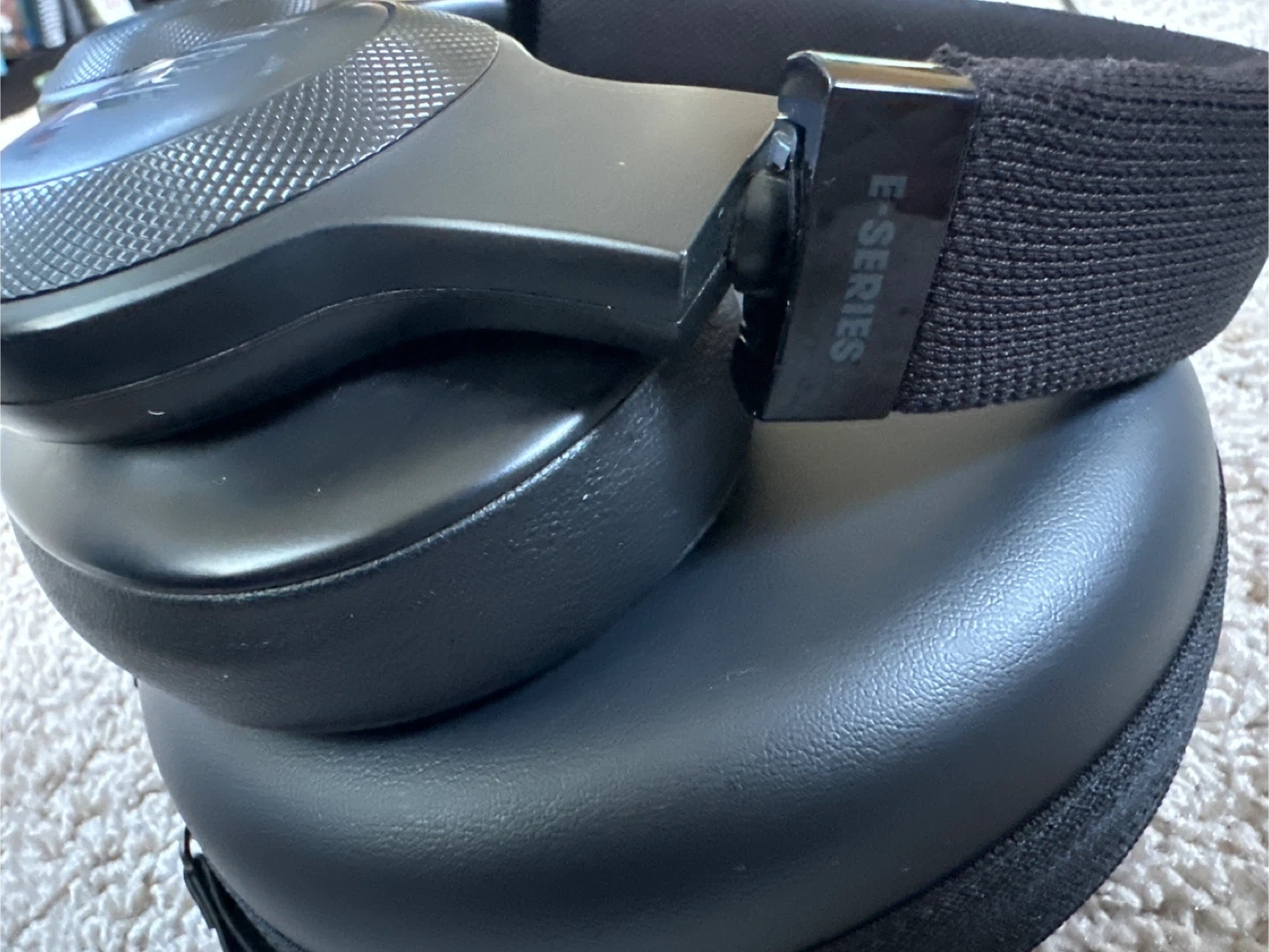 JBL E-Series over-ear headphones in black. They're comfortable for long listening sessions.