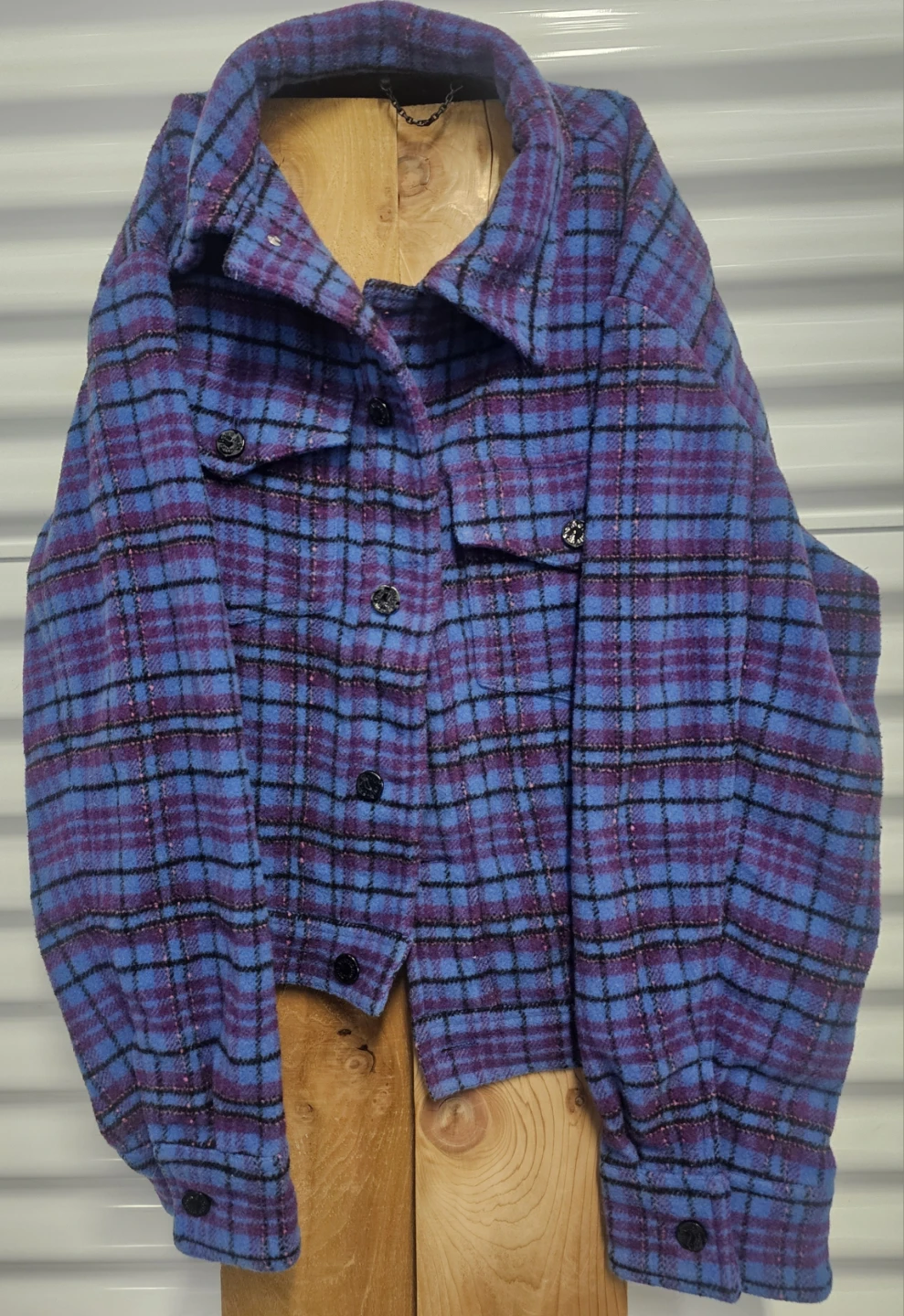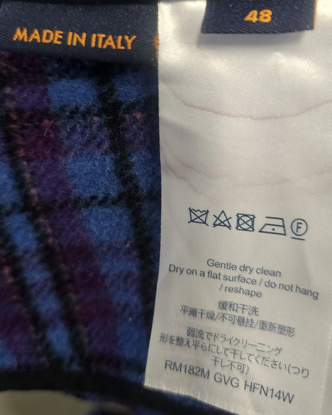 This Louis Vuitton jacket is a stylish addition to any wardrobe! It features a blue and purple plaid pattern and is made in Italy. The jacket is a size M and crafted from wool, perfect for staying warm and fashionable.