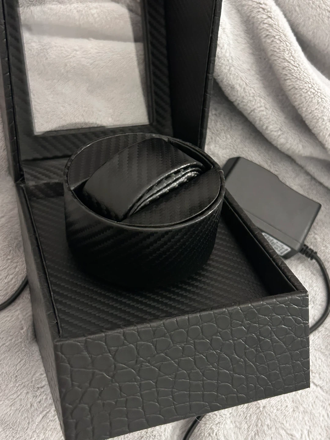 Selling an automatic watch winder in black crocodile faux leather. It's perfect for keeping your automatic watches wound and ready to wear. It comes with the power adapter or insert batteries for wireless display.