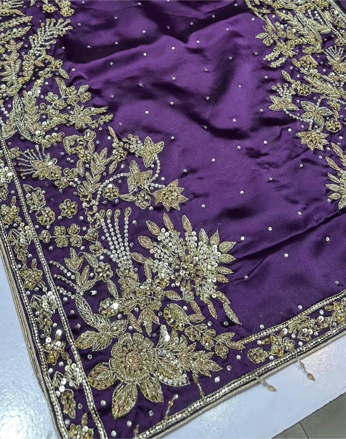 Beautiful article in silk Fabric with Handmade Cora Dabka work , Heavy embroidered sleeves