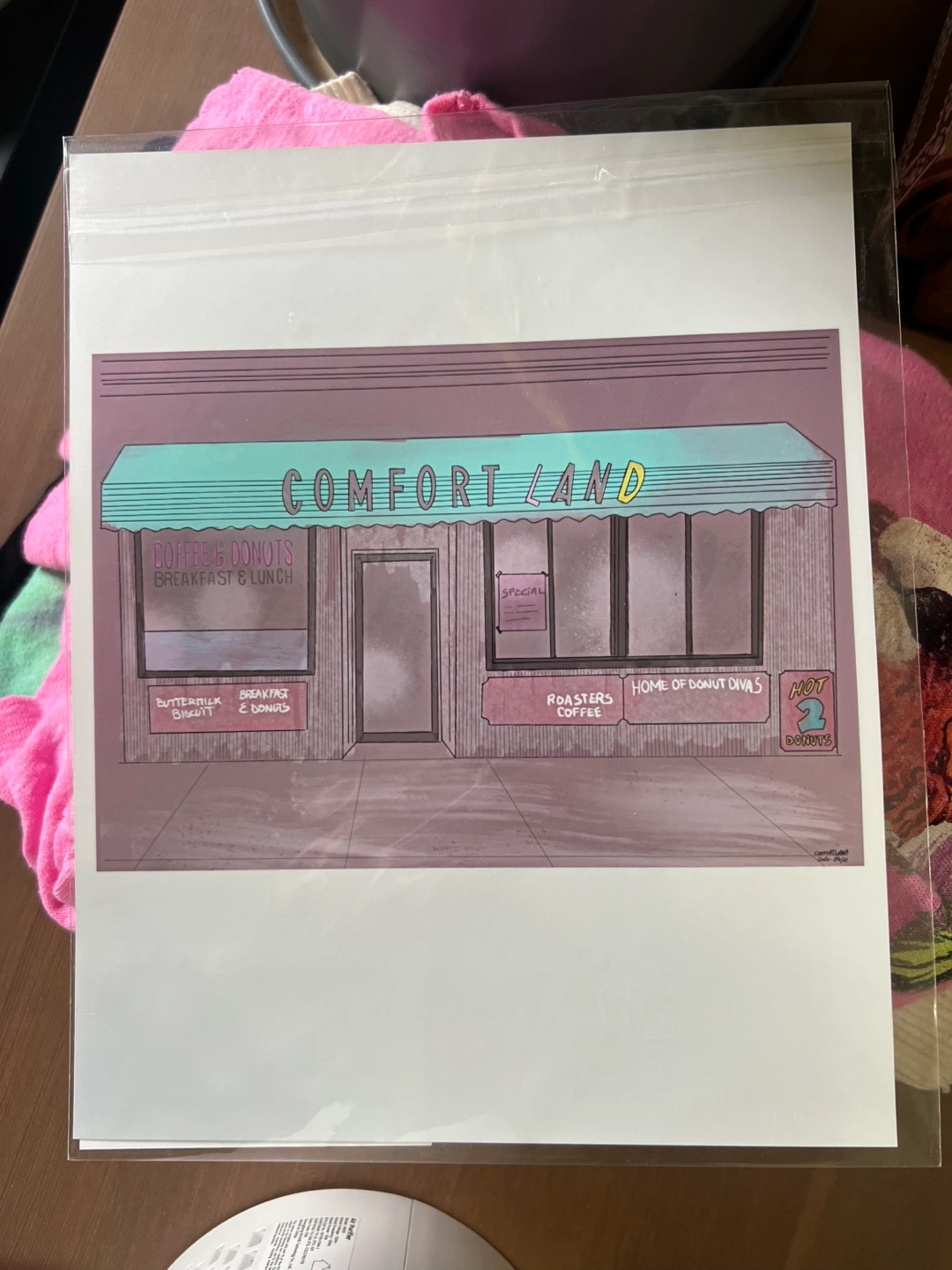 Selling this beautiful print of Comfortland by le cadre blanc! It's in great condition and ready to be displayed in your home. Still in its protective plastic envelope since being purchased. Who doesn’t love our beloved Astoria staple, Comfortland?!