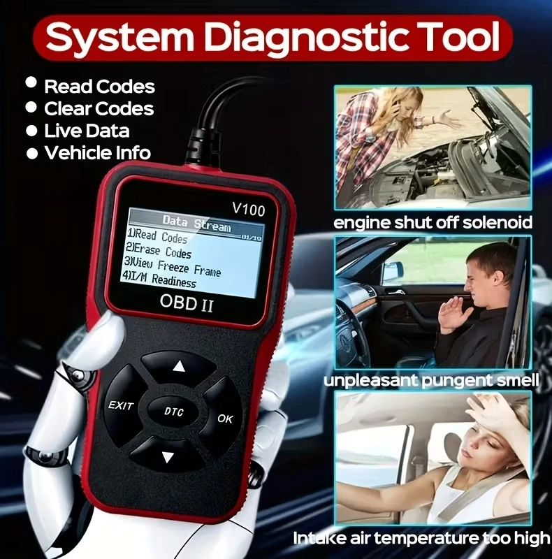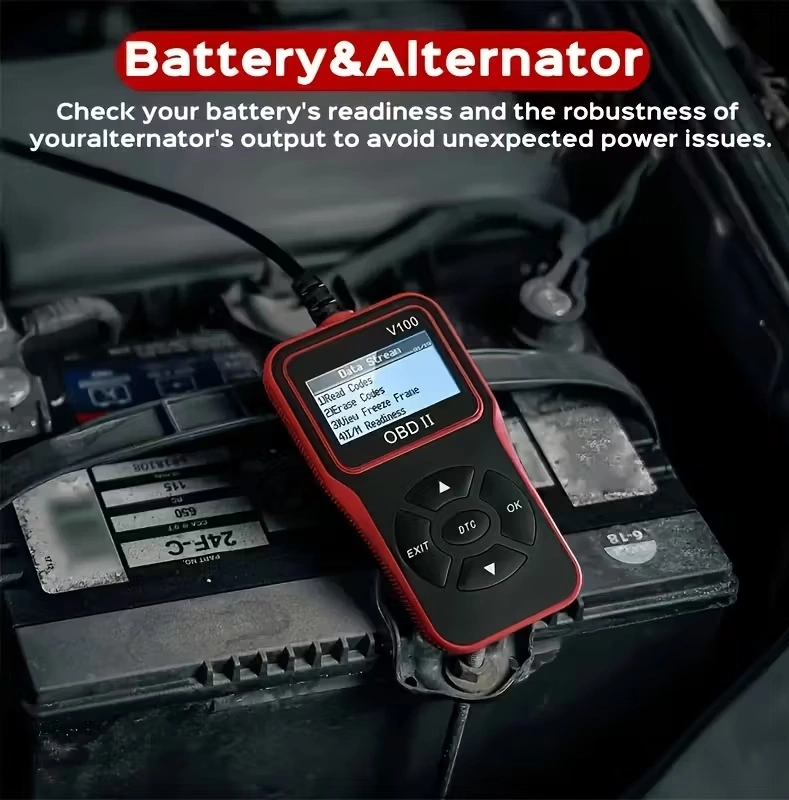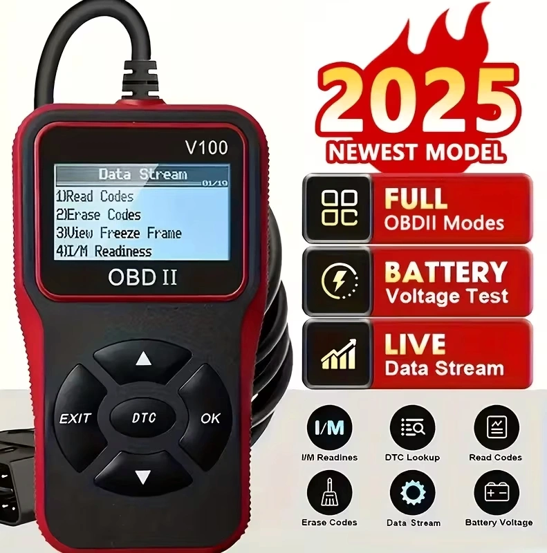 OBD2 Car Scanner V100 / Engine Fault Code Reader & Diagnostic Tool / Compatible All Vehicles Since 1996, Up to 36V, Without Battery