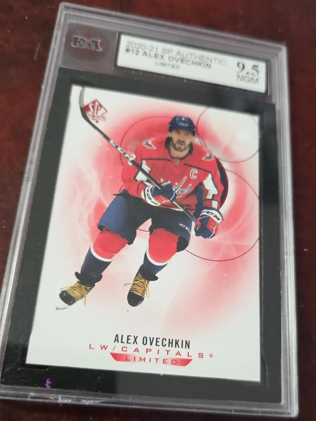 This is a 2020-21 SP Authentic hockey card featuring Alex Ovechkin. It's graded 9.5 by NGM. Card number 12, limited edition.
