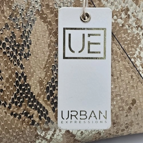 Urban Expression Envelope Clutch Bag With Gold And Beige Faux Sn