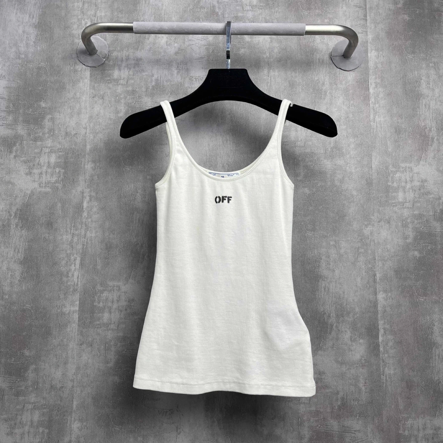 Here's a stylish Off-White tank top in white! It features the brand's logo on the front. This tank is perfect for layering or wearing on its own during warmer weather. It's in great condition and ready for a new home!