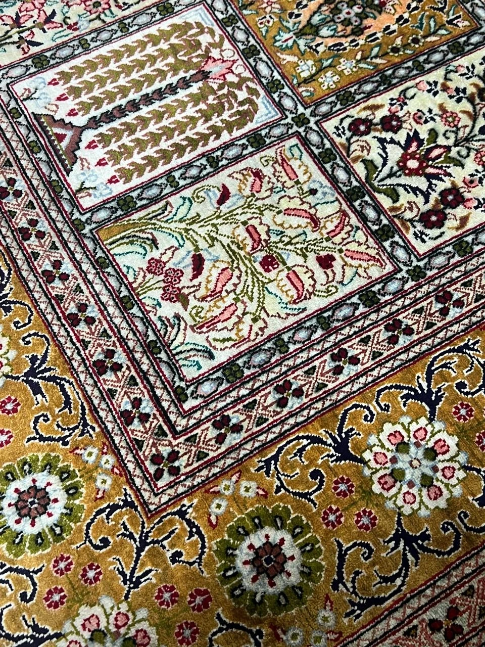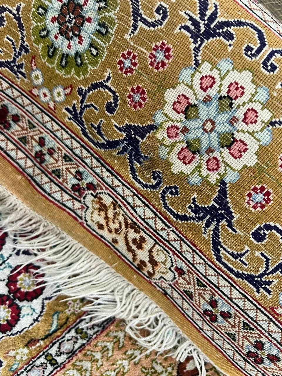دارای ۷۰ کتیبه - حاشیه مسی - لچک و تورنج - دارای ریش اورجینال-چله ابریشم- کتیبه.