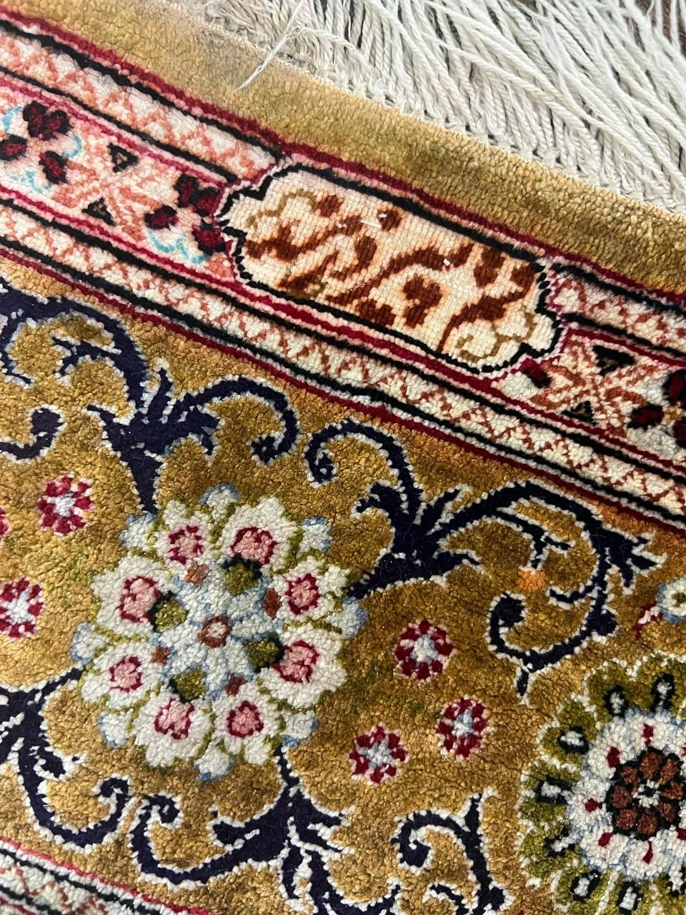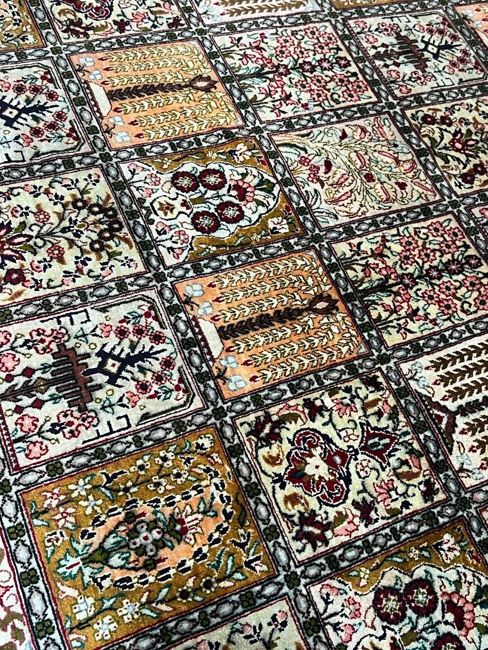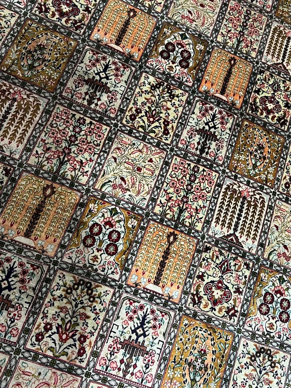 دارای ۷۰ کتیبه - حاشیه مسی - لچک و تورنج - دارای ریش اورجینال-چله ابریشم- کتیبه.