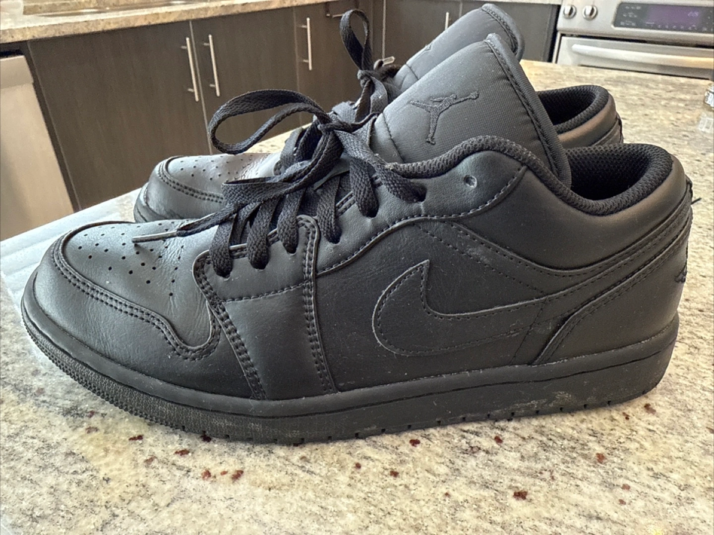 Men's black leather Air Jordan 1 Low sneakers. Classic design. Minimal wear. Good condition.