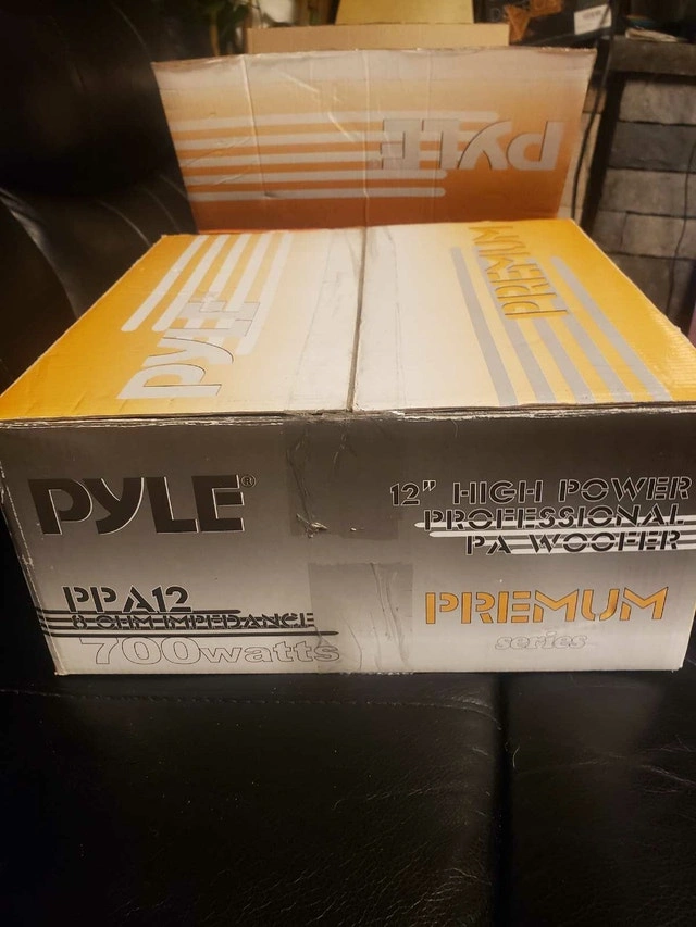 I am selling a new Pyle PPA12 12" 700-Watt Premium Series PA Woofer. This woofer is brand new, never been used, and comes in its original packaging. Specifications: Size: 12 inch, Power: 700 Watts, Series: Premium. Price is $75 each or 2 for $125. If you see this ad, it's still available.