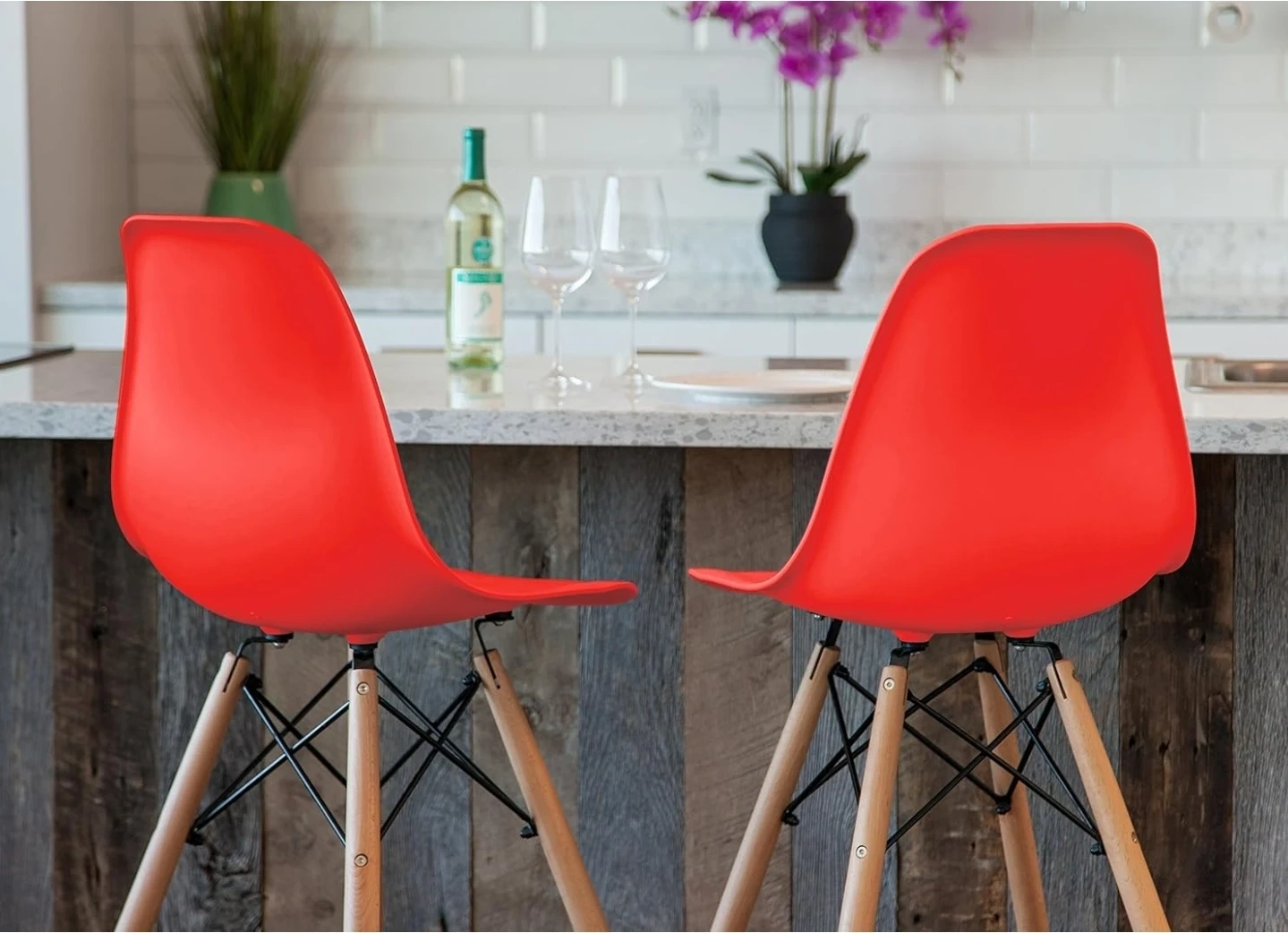 - Seats offer ergonomic shape and smooth finish; Wooden eiffel-style legs provide stability