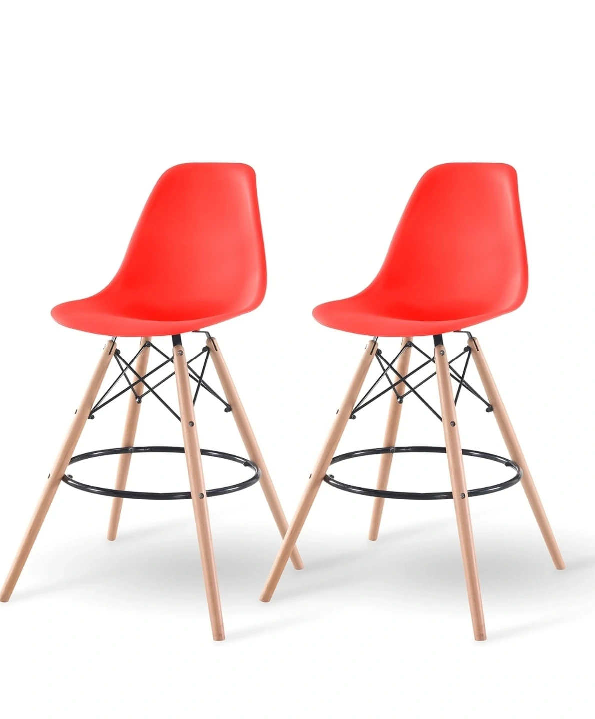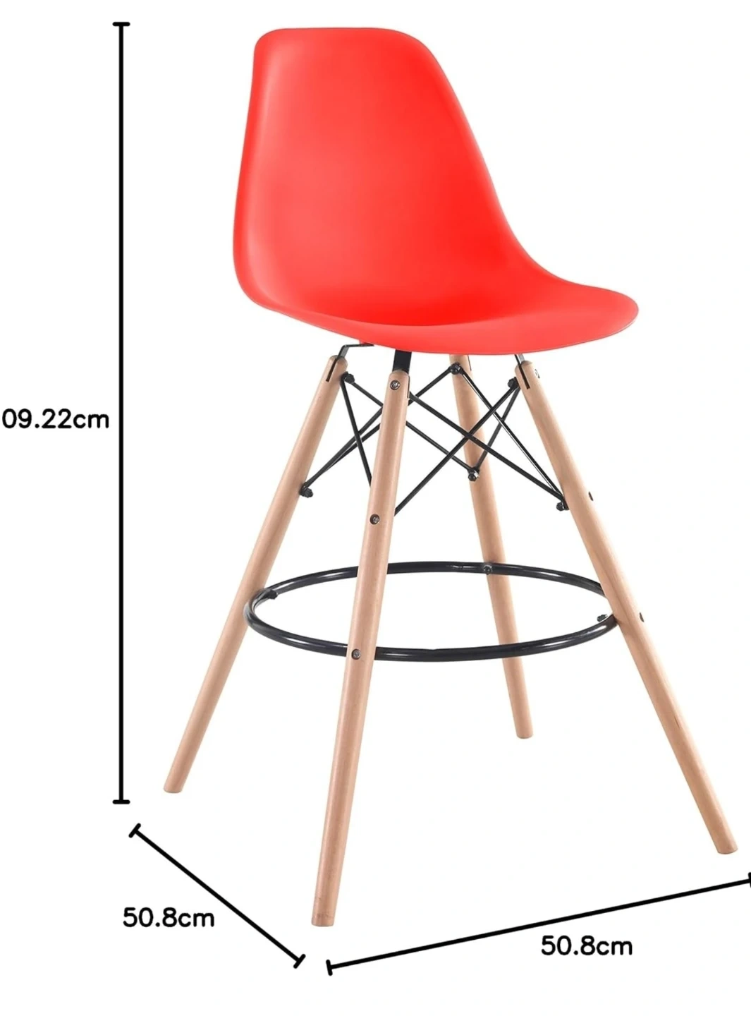 This set includes two beautiful bar stools with natural wood legs and a black footrest ring. They're durable with Seat height 109.22cm and width is 50.8cm.
