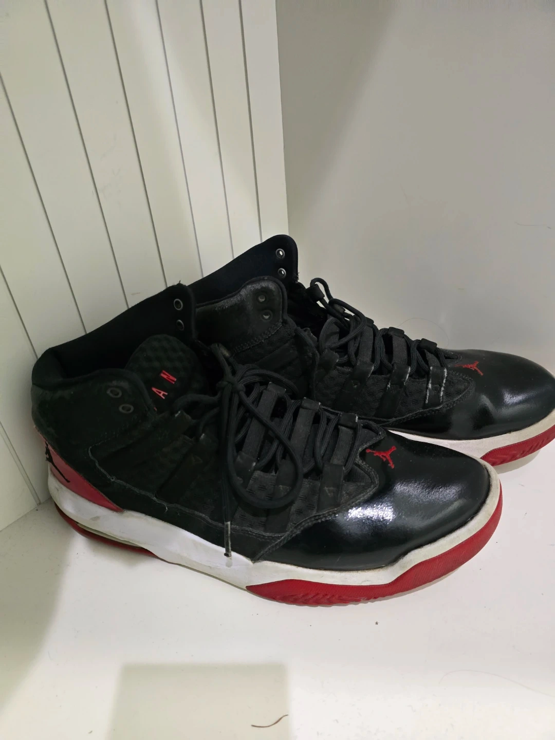 Selling a pair of Nike shoes. One is an Air Jordan 1 and the other is a Jordan 11. Both show signs of wear but still have lots of life. They are size 10.