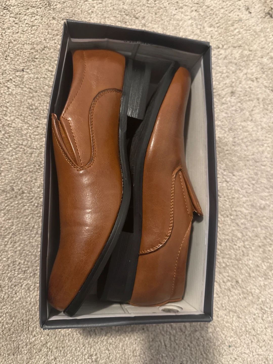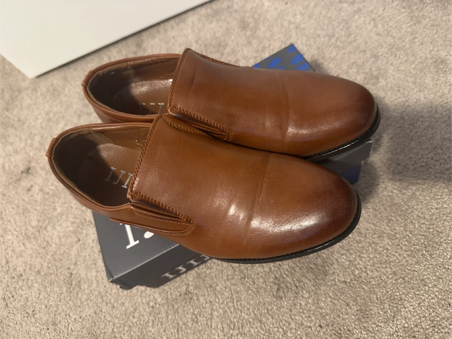 65Selling a pair of IJJ men's dress shoes in a stylish brown leather. These are slip-on style, perfect for a dressy occasion. They come with the original box!