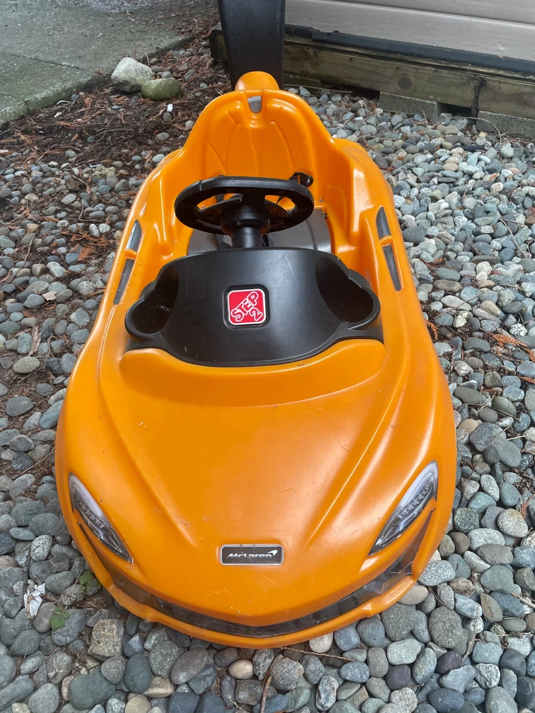 Selling a gently used Step2 McLaren 570S push car! It's in great condition and ready for some fun adventures. Perfect for little ones who love cars and being pushed around. Comes with a steering wheel and a push handle for parents. Your kiddo will love cruising around in this stylish ride!