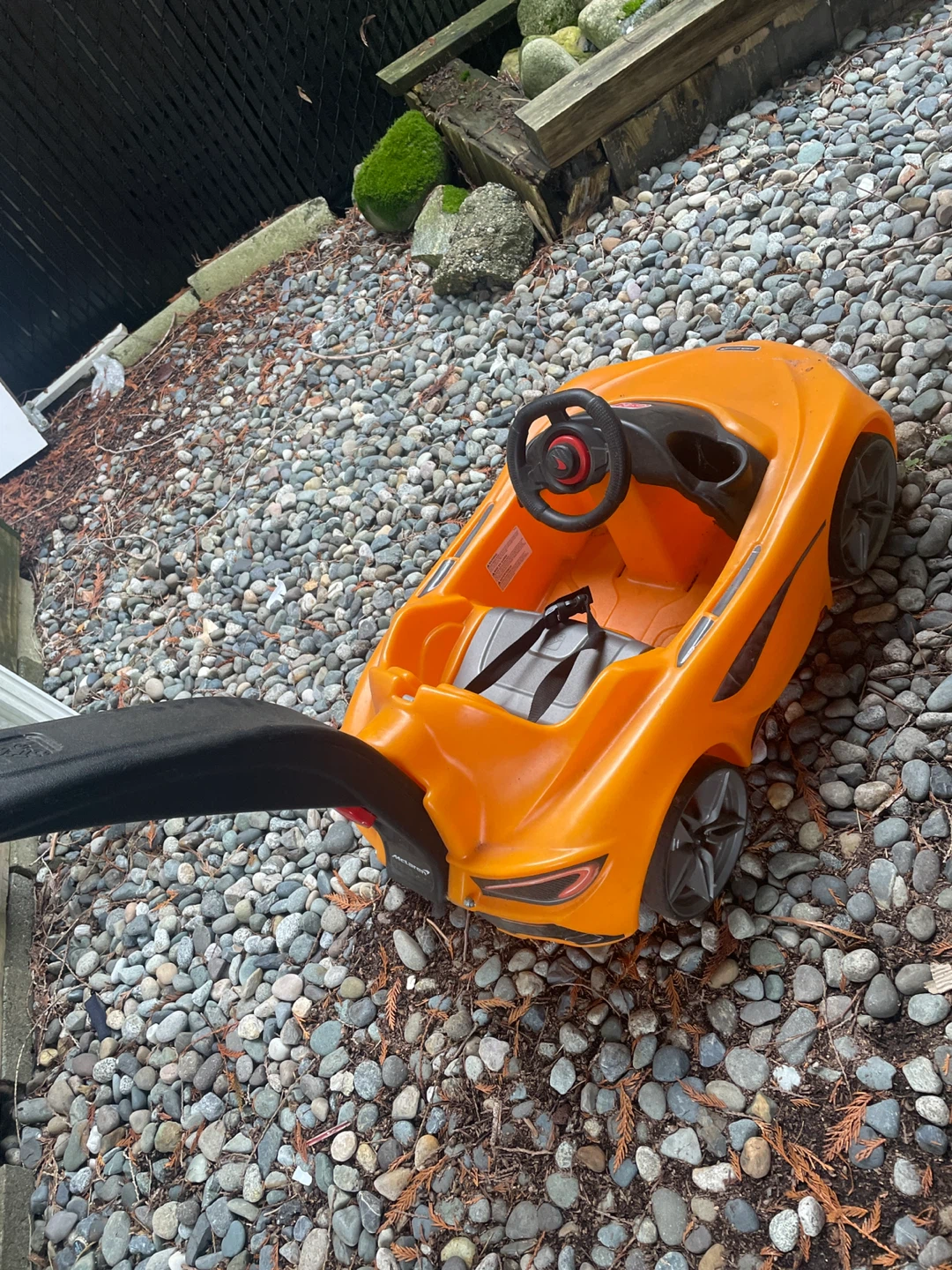 Selling a gently used Step2 McLaren 570S push car! It's in great condition and ready for some fun adventures. Perfect for little ones who love cars and being pushed around. Comes with a steering wheel and a push handle for parents. Your kiddo will love cruising around in this stylish ride!