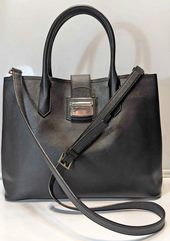Elevate your daily commute or weekend look with this timeless and sophisticated Mango (MNG) shopper tote. This bag features a professional, structured silhouette in a classic black Saffiano-effect finish, giving it a high-end look that is both durable and easy to maintain.