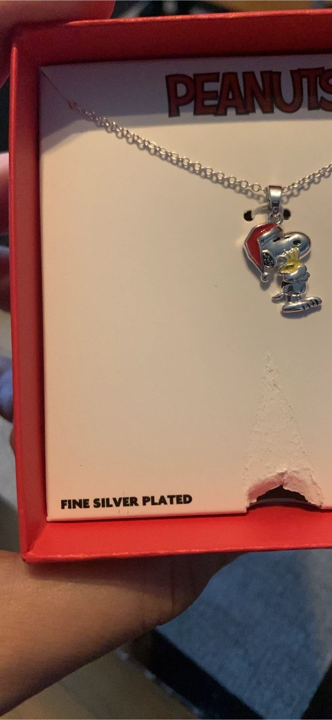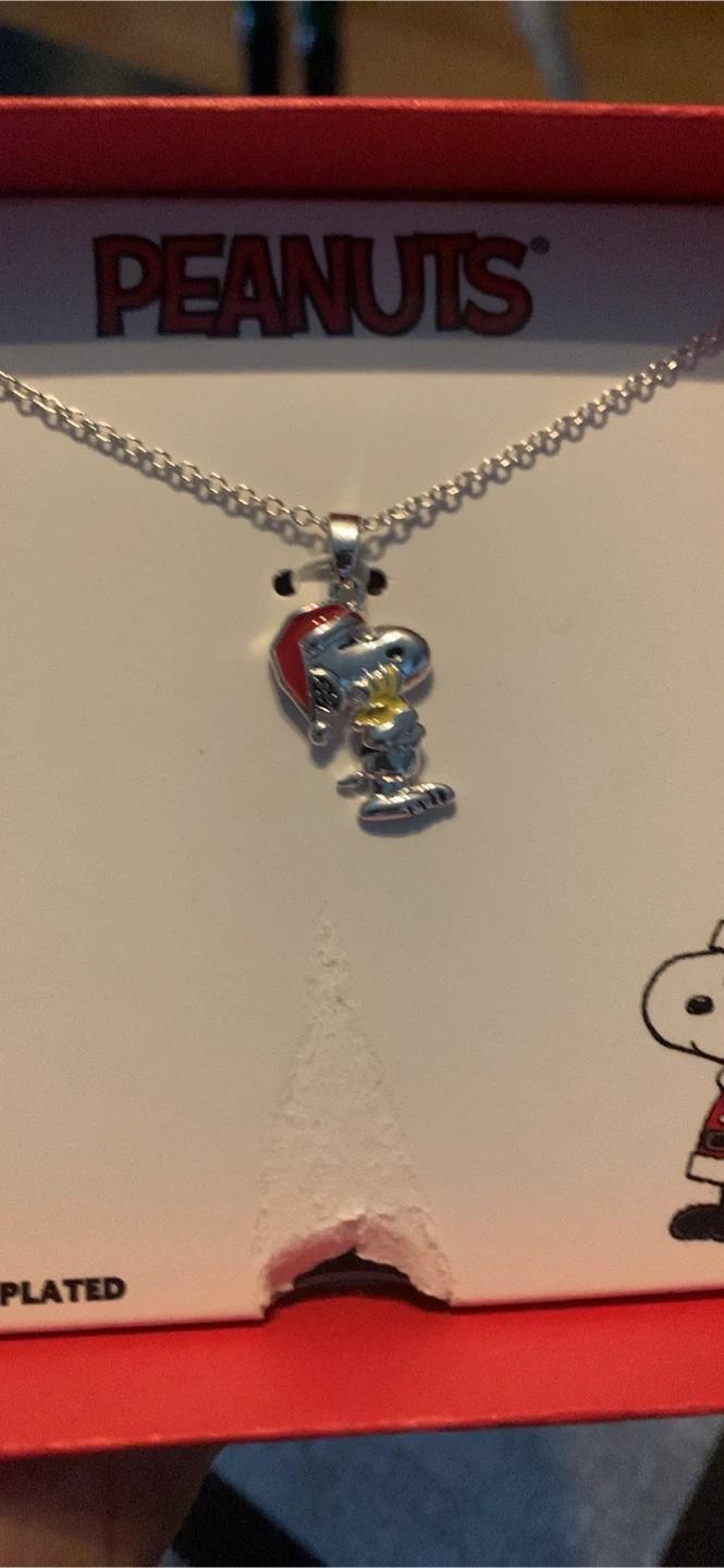 Peanuts Snoopy necklace! It's fine silver plated and features Snoopy with a Santa hat.