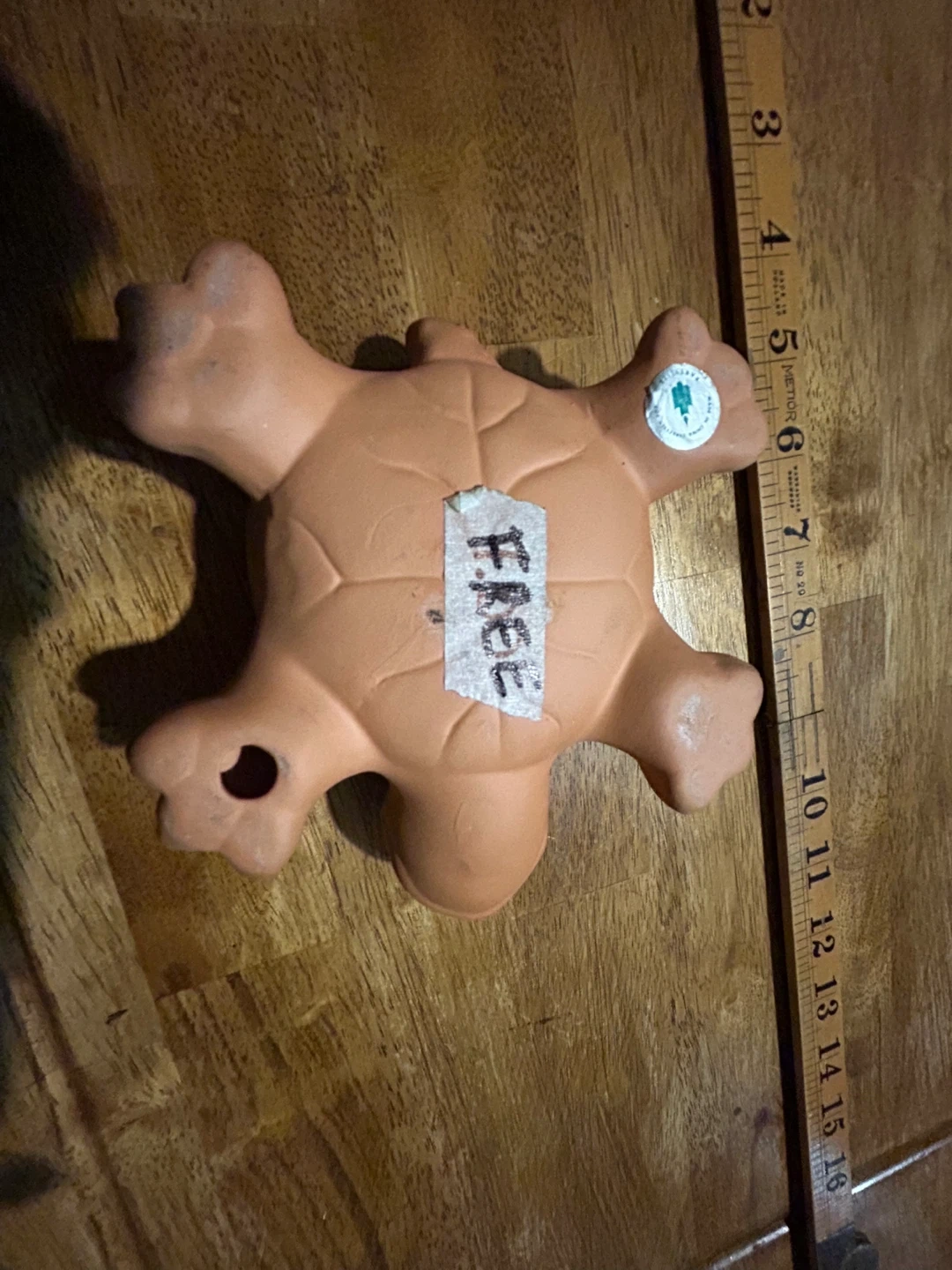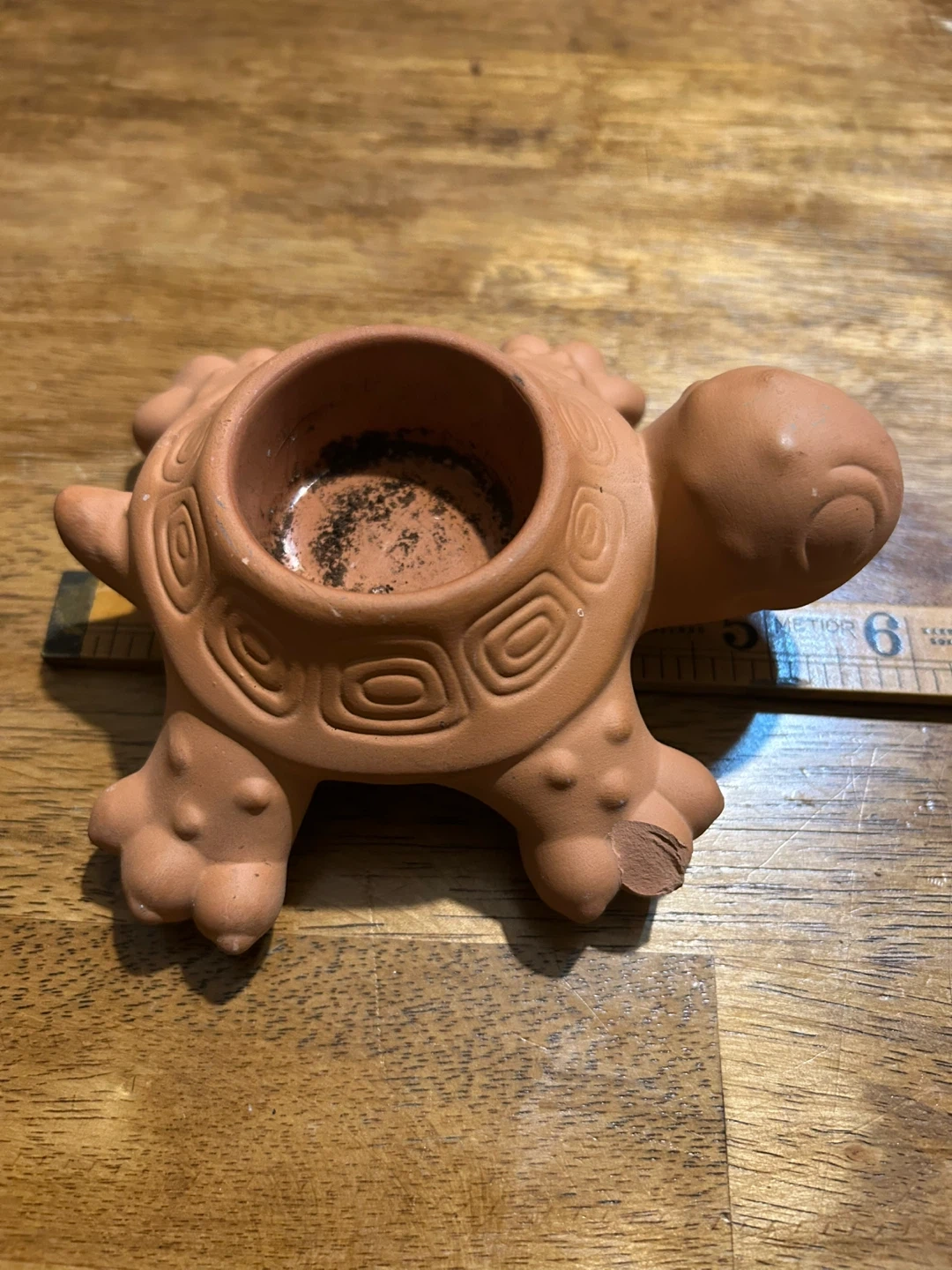 Buy & SellTerracotta Turtle tee light candle holderTerracotta Turtle tee light candle holderFreeCute terracotta turtle candle holder. It's made of terracotta and has a decorative shell design. This item is being sold as is. KeswickWHERE TO MEETKeswickView MapSELLERverifiedSarahSGeorgina1607 reviews0 chats·0 favorites·11 viewsSEND CHAT TO SELLERHi SarahS! I’m interested in your listing.Hi SarahS! I’m interested in your listing.Get the Karrot app to chatSign In to chat