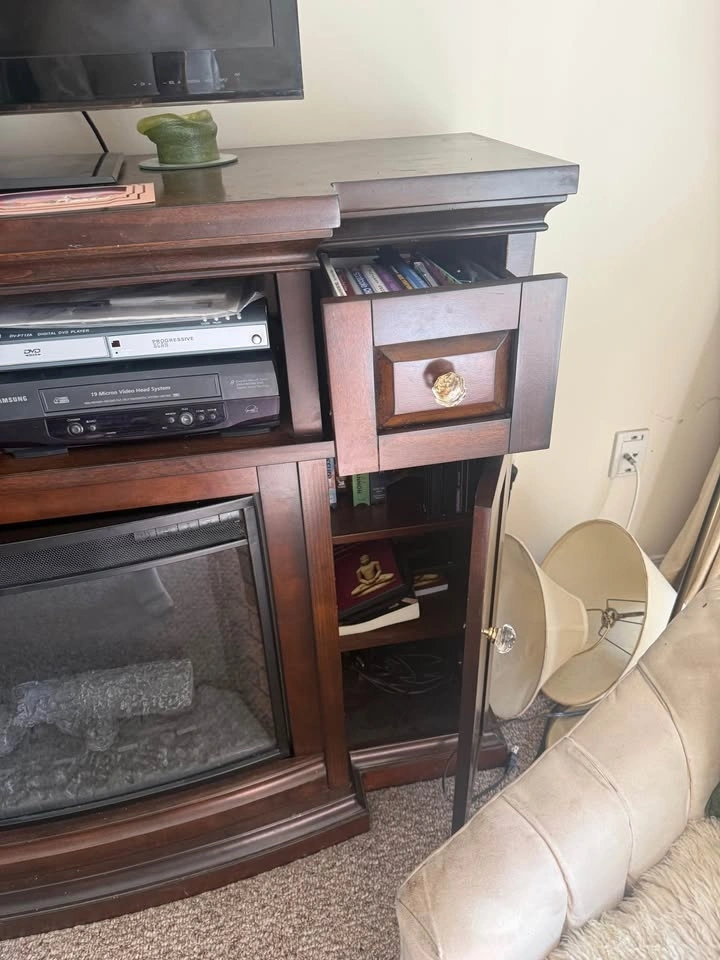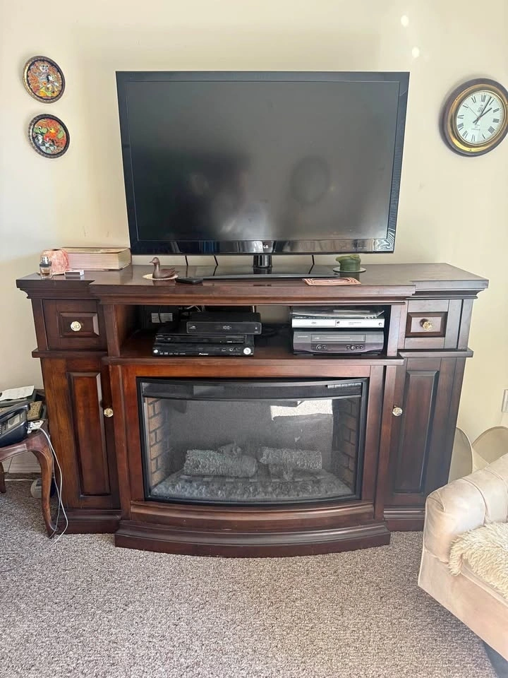 Combination electric fireplace and entertainment unit. Solid wood and in excellent working order with both flame and heat elements fully functioning. Comes with remote. Dimensions: 64” long, 18.5” wide, and 41” high. Originally purchased for $1200. Must pick up in Port Coquitlam. Unit is heavy.