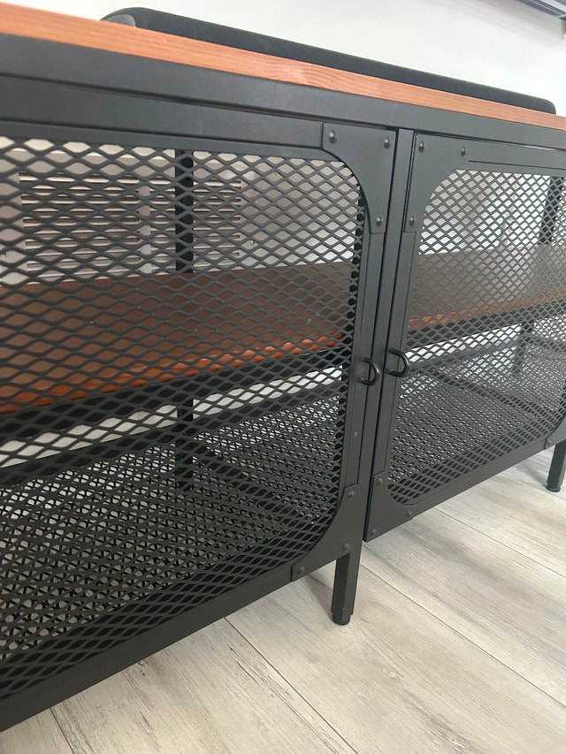 Since the doors allow signals to get through from your remote control, your electronic equipment will get along well with FJÄLLBO. The open back makes it easy for you to manage cables. Condition: Used - Good. For Sale By: Owner.