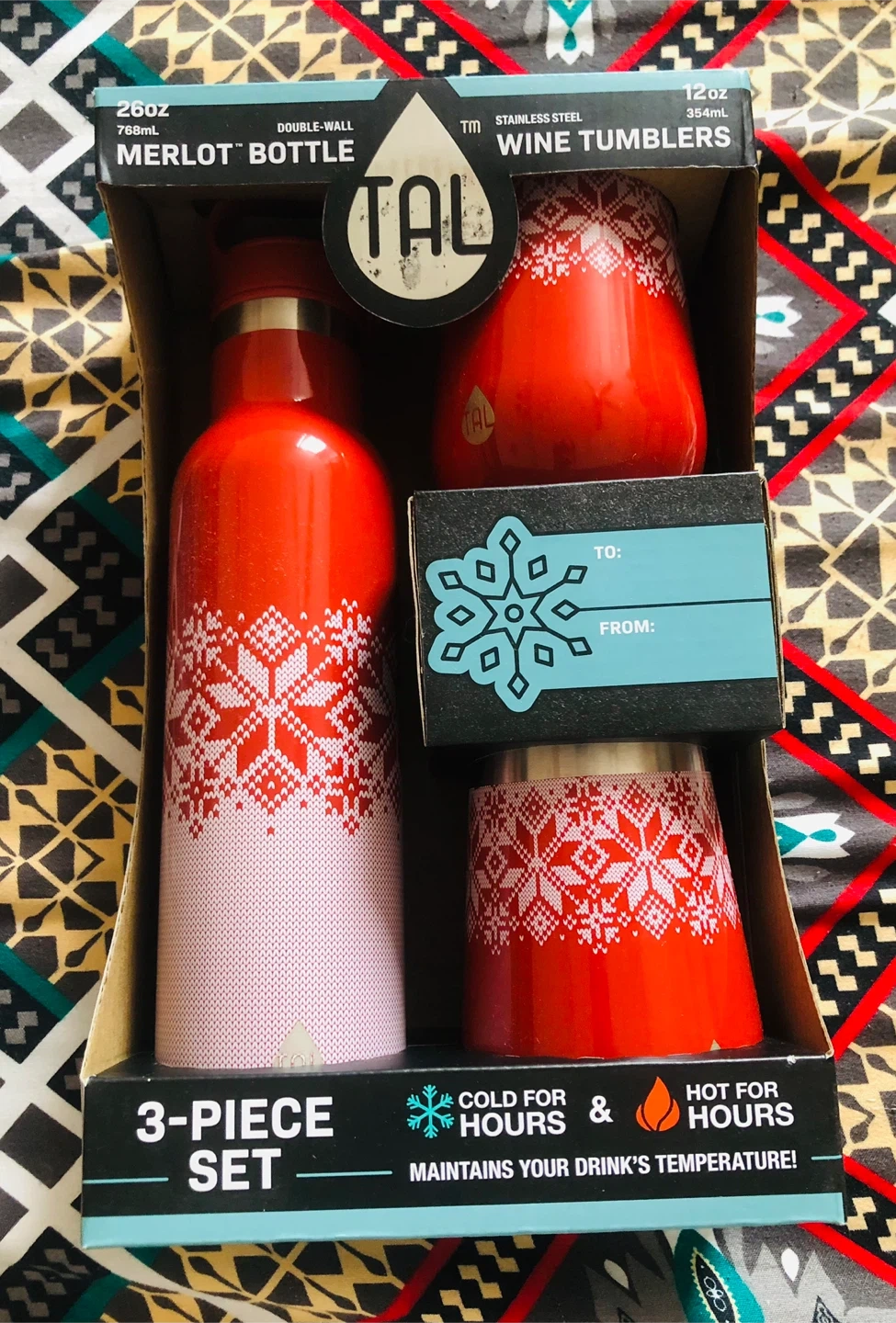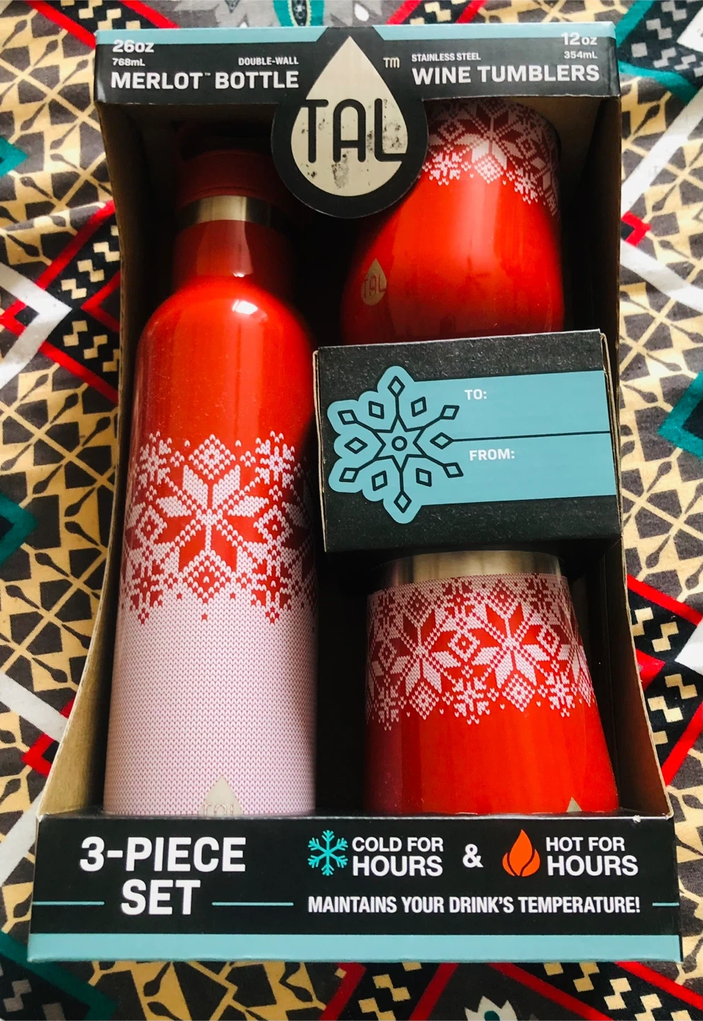 TAL 3-Piece Merlot Bottle & Wine Tumbler Set - Red Snowflake