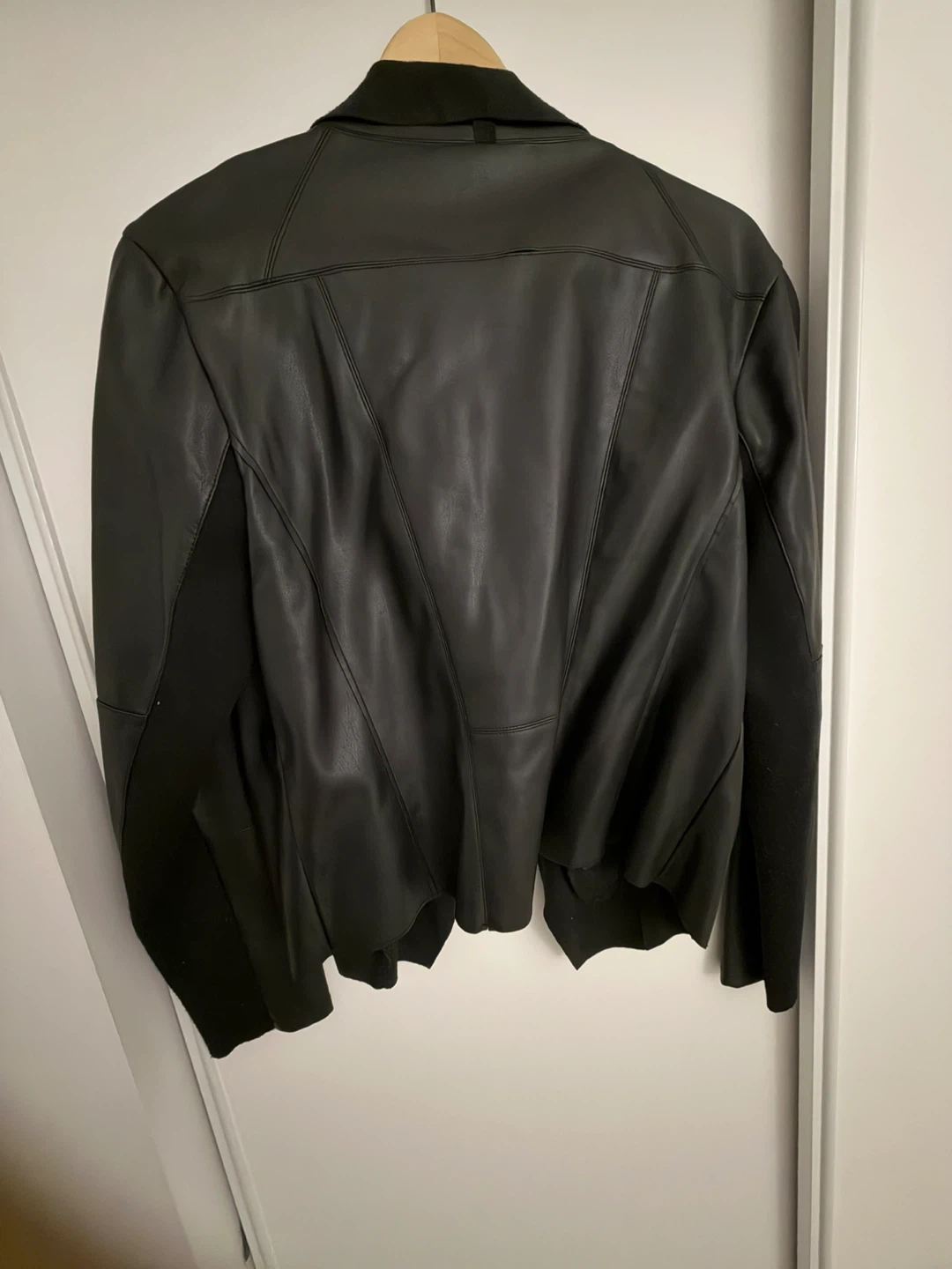 Black Drape Front Faux Leather Jacket