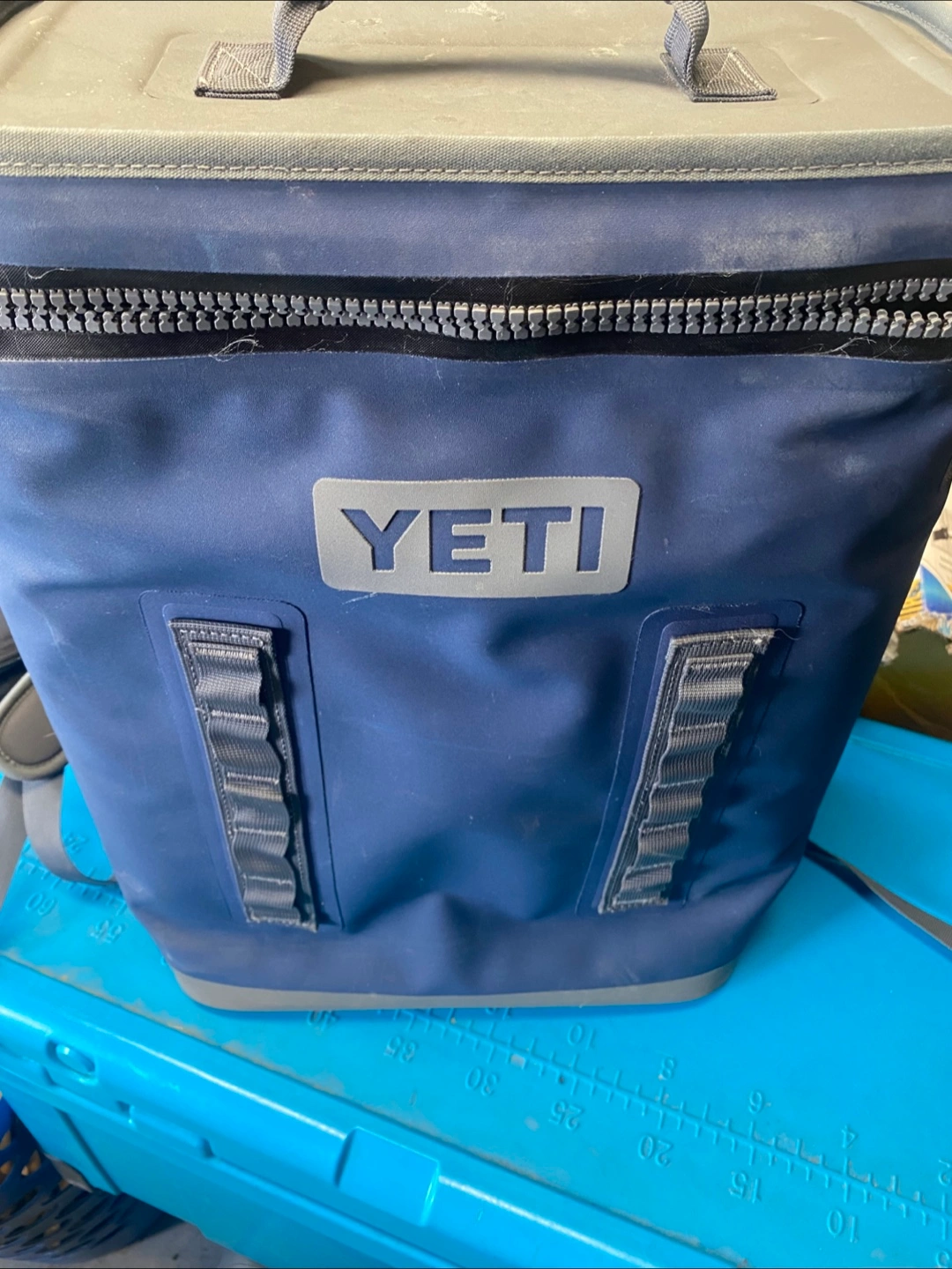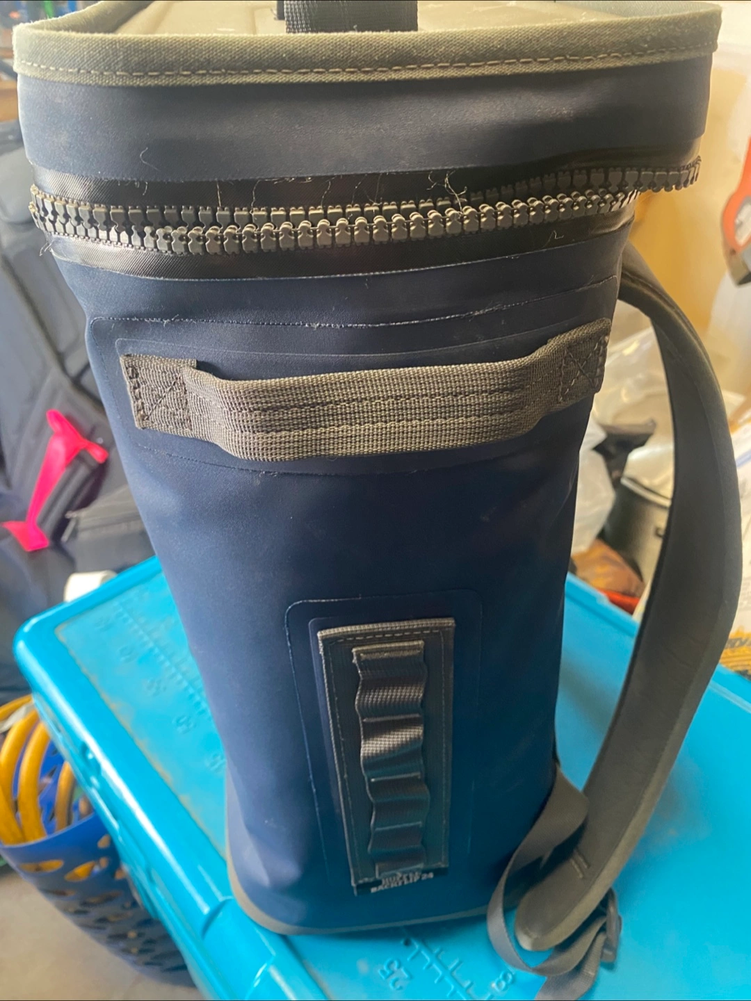 Durable, waterproof backpack cooler. Great for carrying drinks and food. Features adjustable straps and a zipper closure , minor wear.