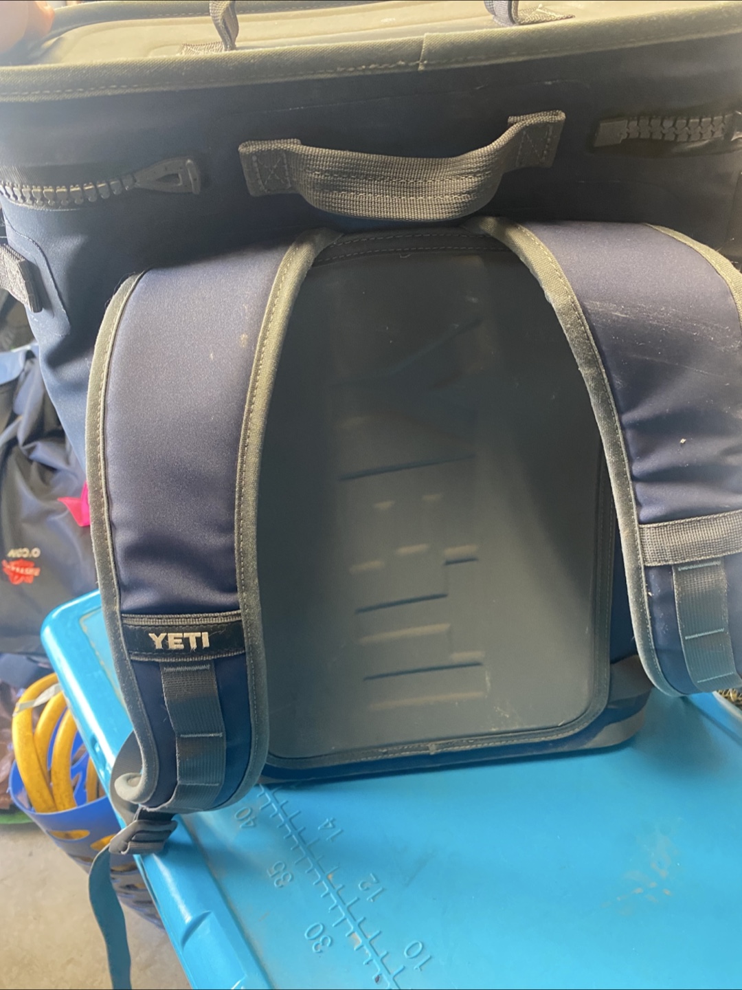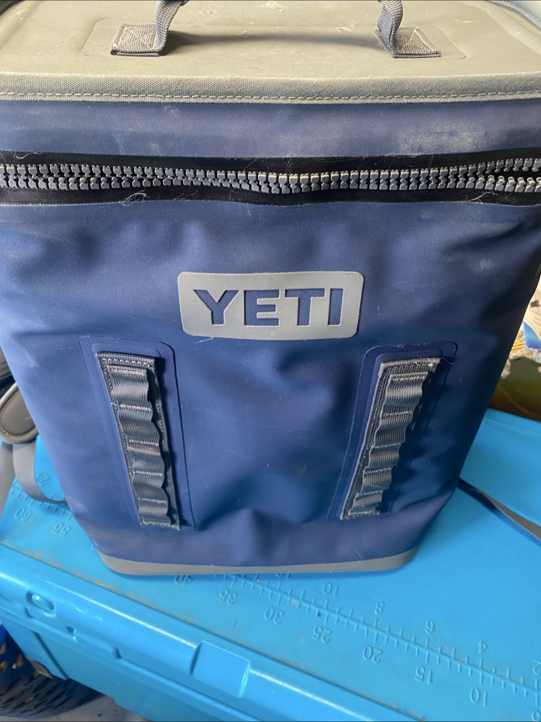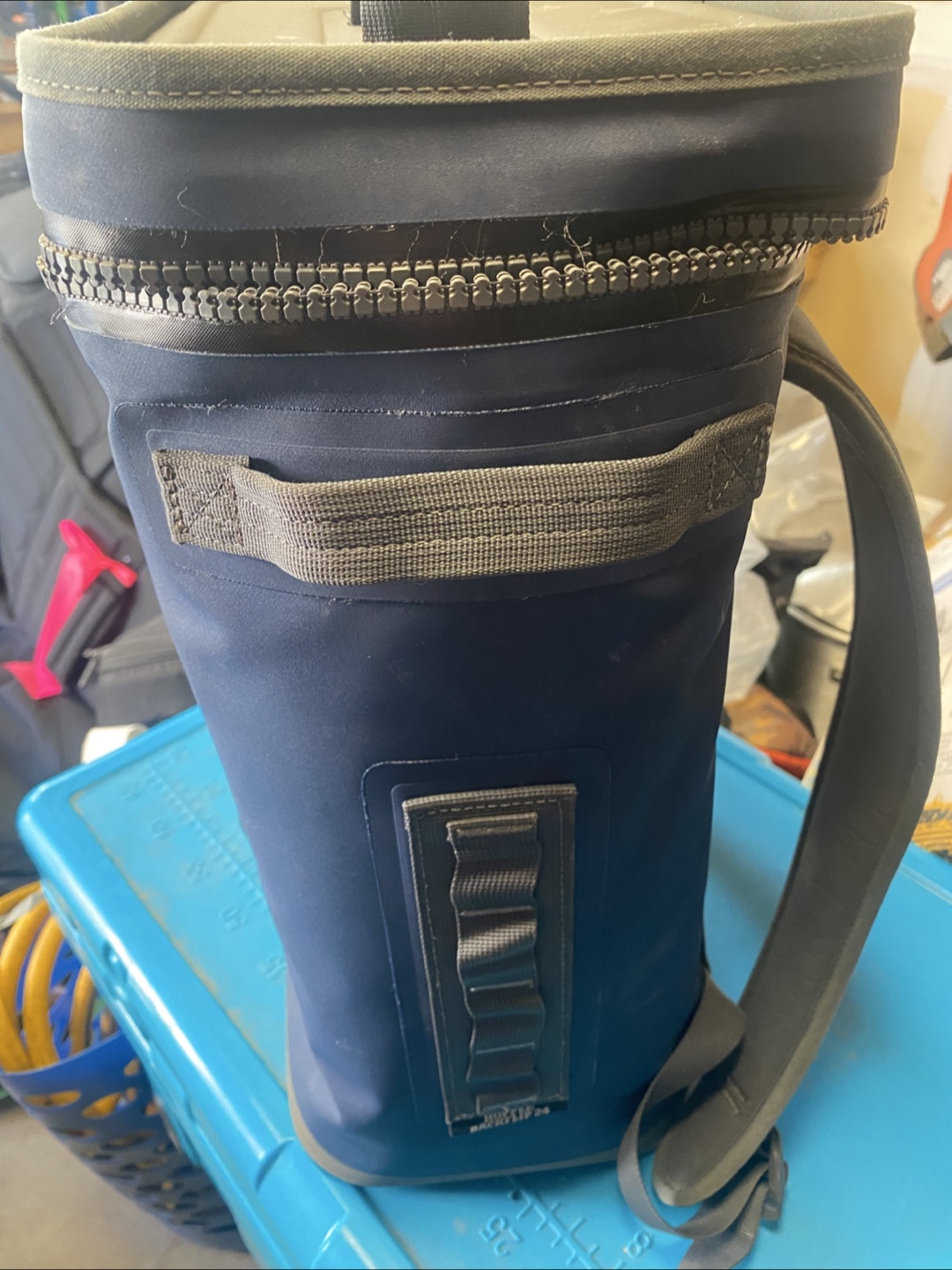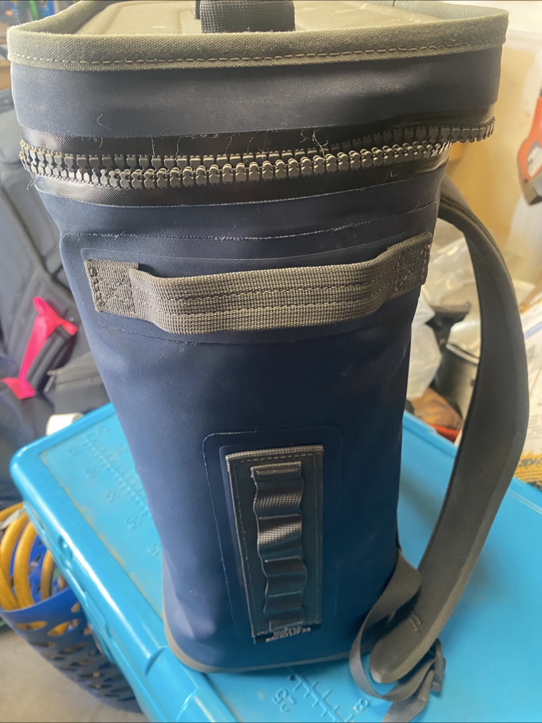 Durable, waterproof backpack cooler. Great for carrying drinks and food. Features adjustable straps and a zipper closure , minor wear.