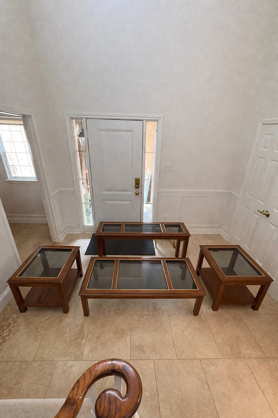 Set of 4 Wooden Coffee and End Tables with Glass Tops