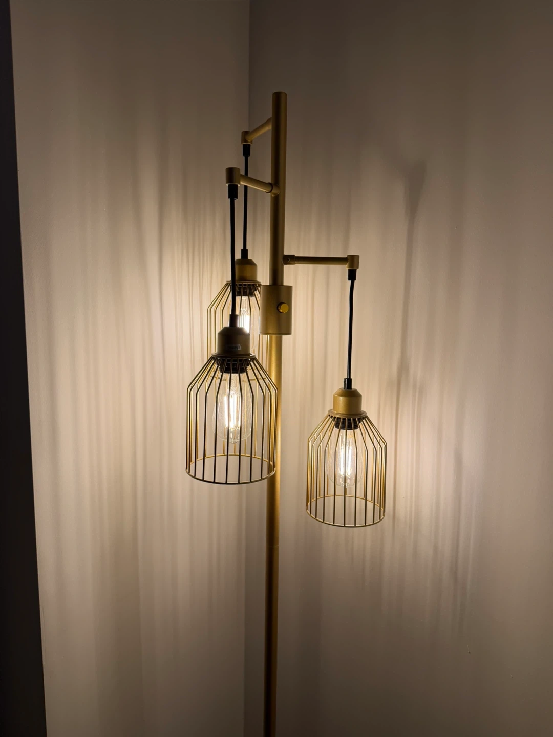 Gold Floor Lamp with Cage Shades