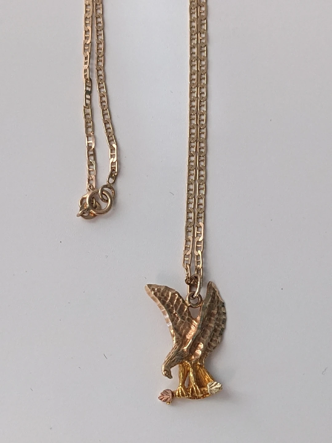 Mens 10k Gold Box Chain 10k Gold Eagle Pendant Stamped