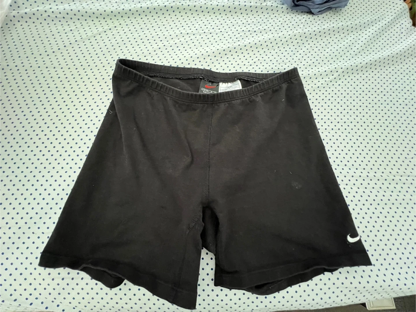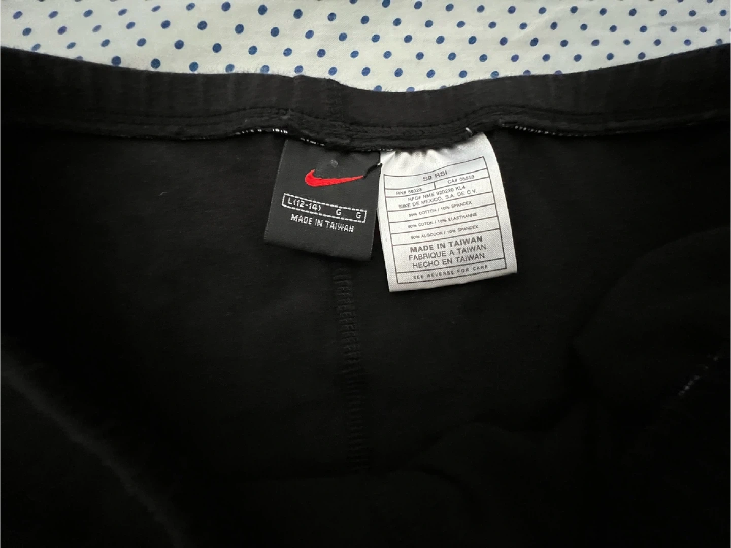 These black Nike athletic shorts are a women's size large. They're made with 90% cotton and 10% spandex for comfort and flexibility. Great for workouts or casual wear!
