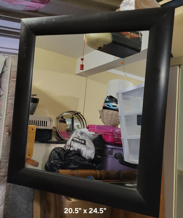 Selling a black framed mirror. It measures 20.5" x 24.5". It's in good condition and ready to add a touch of elegance to your space. Let me know if you are interested. Thanks.